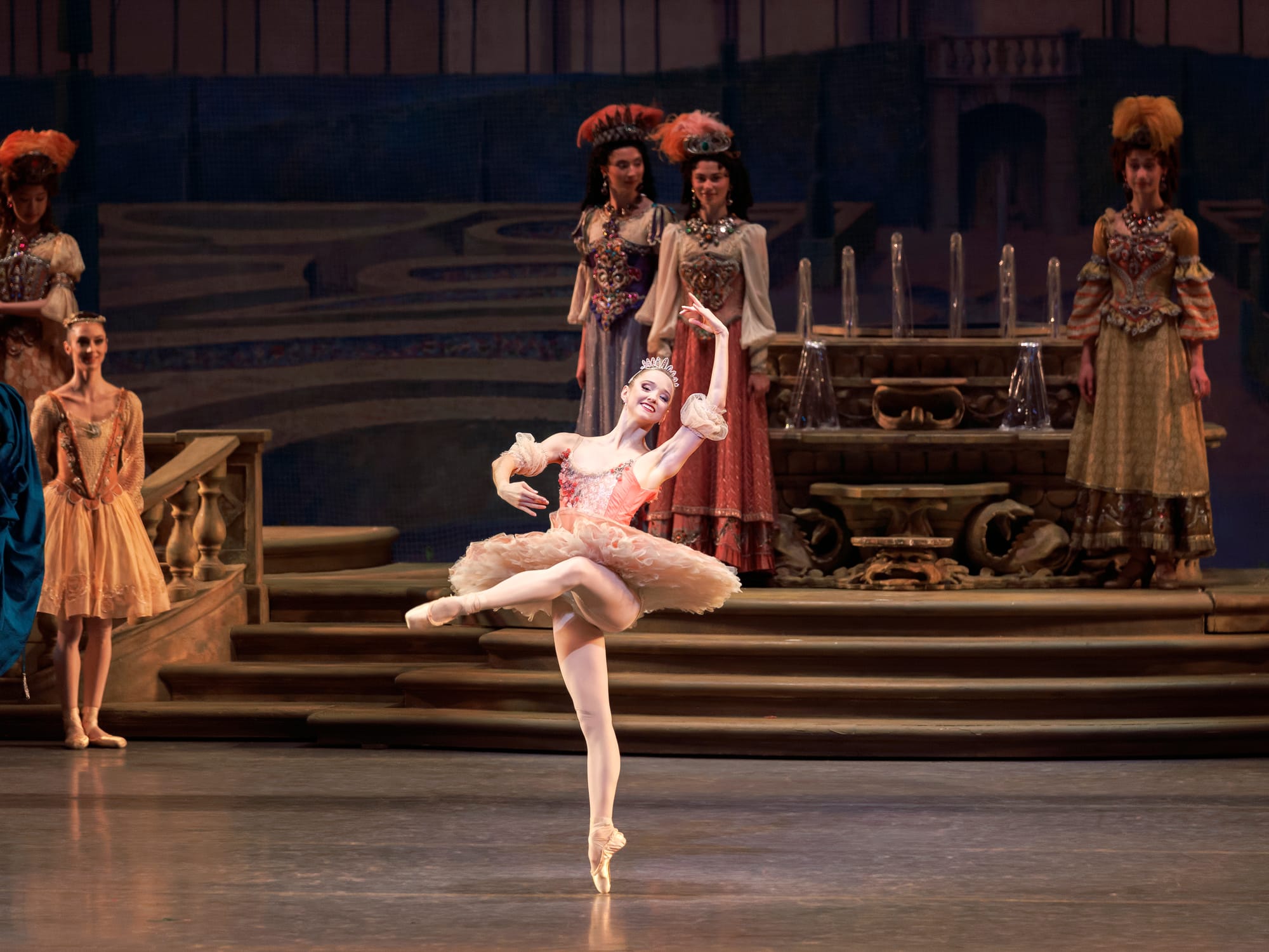 The group fairy dances fared reasonably well – symmetry was sharp, leg heights in the held écartés were admirably uniform – but the variations nearly unraveled things. Gabriella Domini as Tenderness lacked the far-reaching grandeur her variation calls for. Maya Milić as Vivacity launched into strong jetés but ended with jerky attitude devants and hands that appeared to be mashing potatoes, not adding movement accent. Sarah Harmon's Fairy of Generosity was too slow through the feet, each tombé leaden and over-pronounced, while Mia Williams as Eloquence offered arms that were busy, abrupt, and anything but, with pas couru to match. The saving grace was Ruby Lister, whose Fairy of Courage had the strong presence and confident delivery the variation demands – a welcome reprieve until Afanasenkov returned to right the ship.