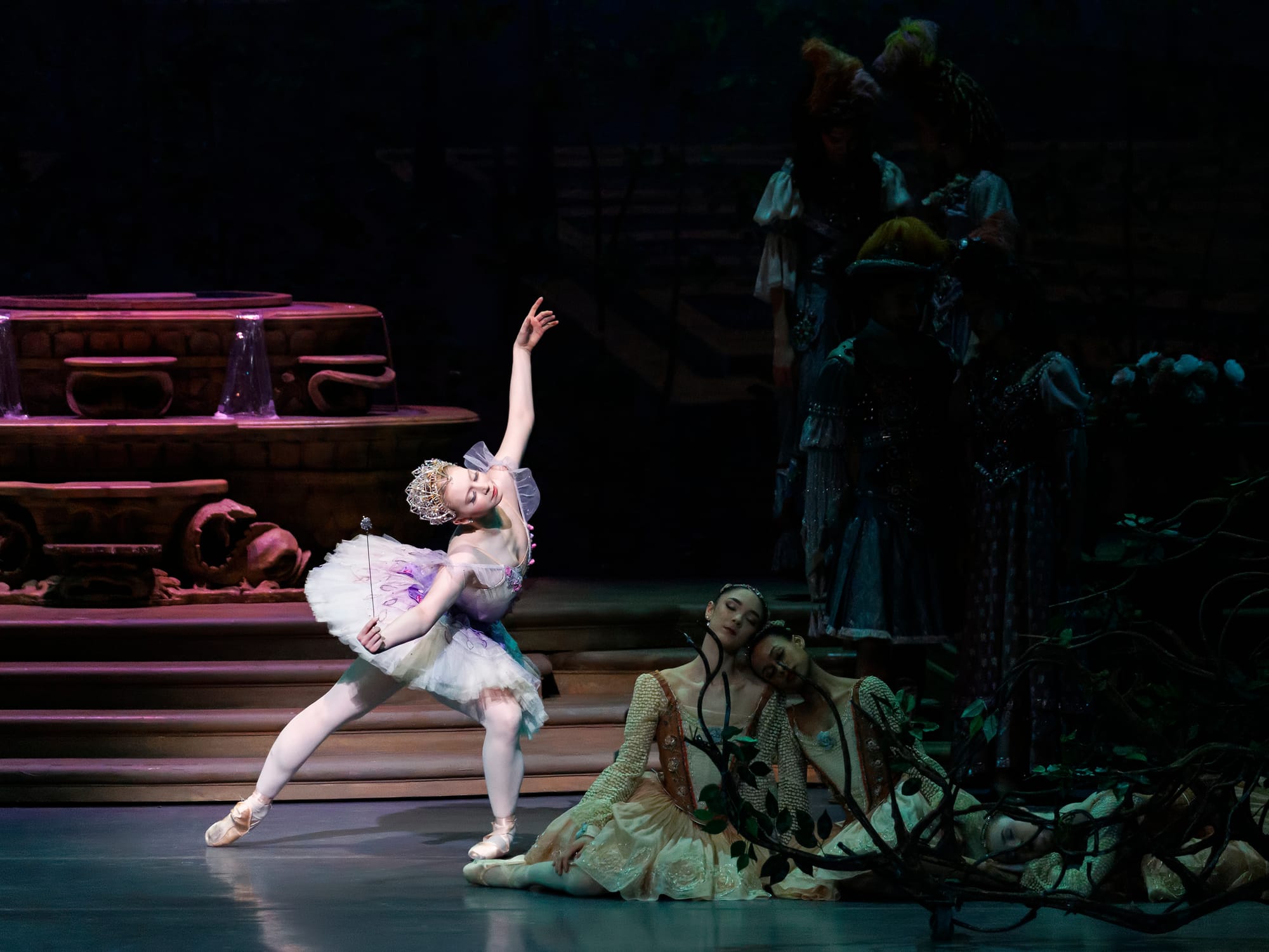 From her first entrance, Afanasenkov – who seemed to have been saving herself all season for this role – moved with deliberate, unhurried authority. She was a force for good, and she made sure the audience lingered with her through deliberate phrasing and beautiful accenting. Even a reach toward a page boy at the top of the ball scene, gracious and warm, or a lean back to acknowledge her partner, read as carefully considered details worthy of a royal occasion. She stood out from her fellow fairies not merely because of her magnetism, but because of what she did with it.