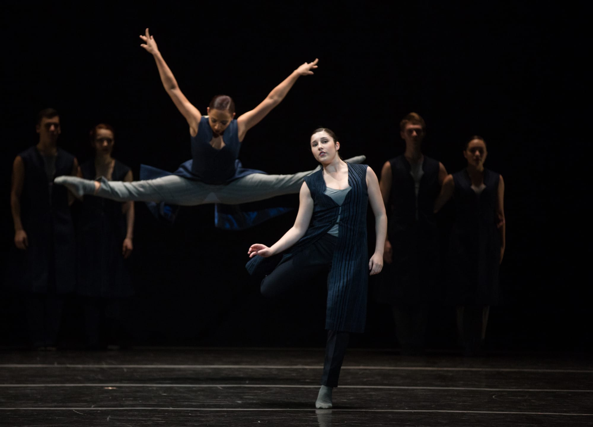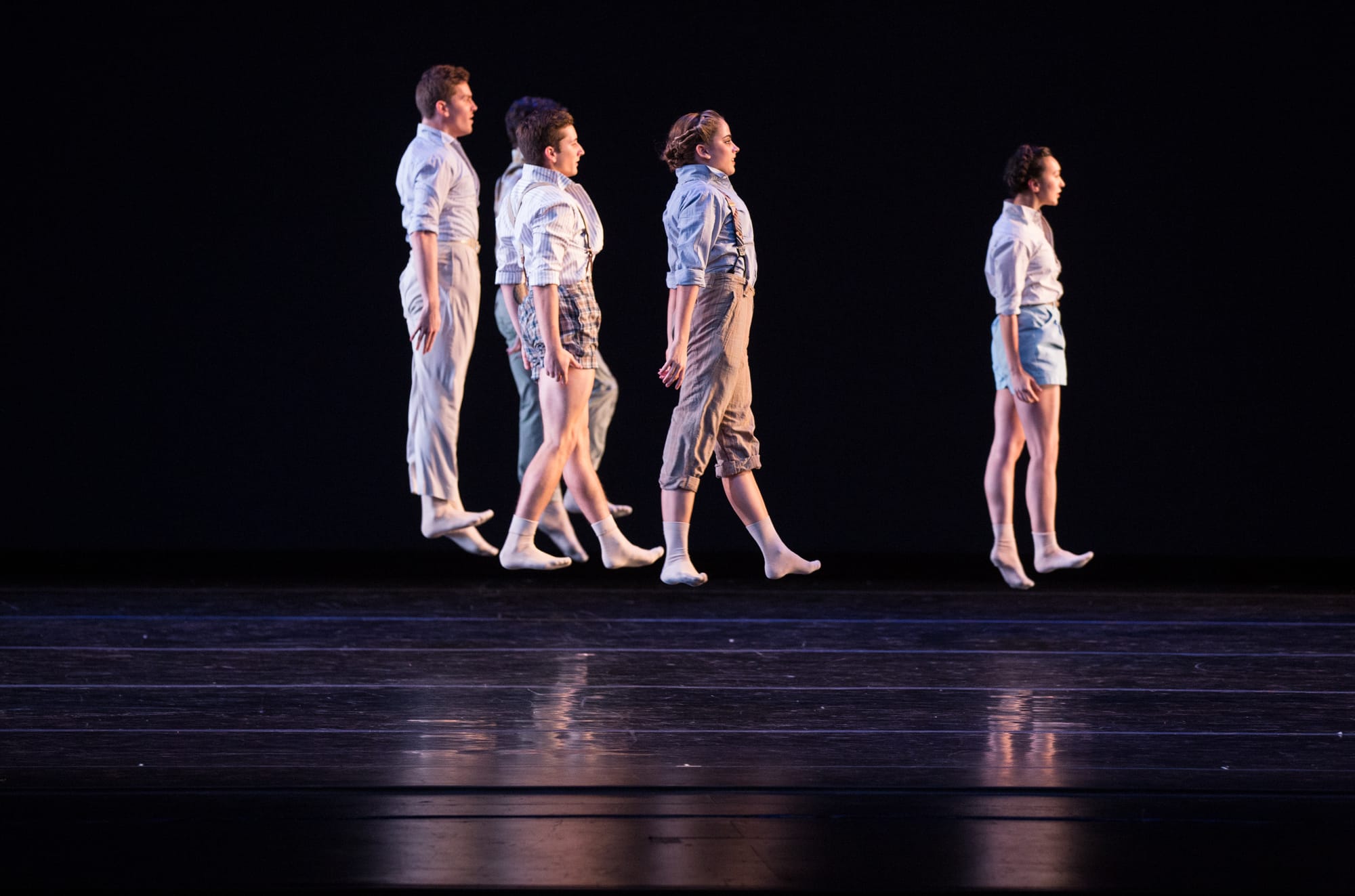 Juilliard Dance presented new works choreographed for each of their four classes. Since the choreographers (John Heginbotham for the 2020 class, Katarzyna Skarpetowska for the 2019 class, Pam Tanowitz for the 2018 class, and Matthew Neenan for the 2017 class) needed to use all of the dancers, the works tended to resemble each other, as they all had large casts moving in unison. They were also similar in that the dancers moved clearly, with articulate upper bodies and clean, juicy dancing.