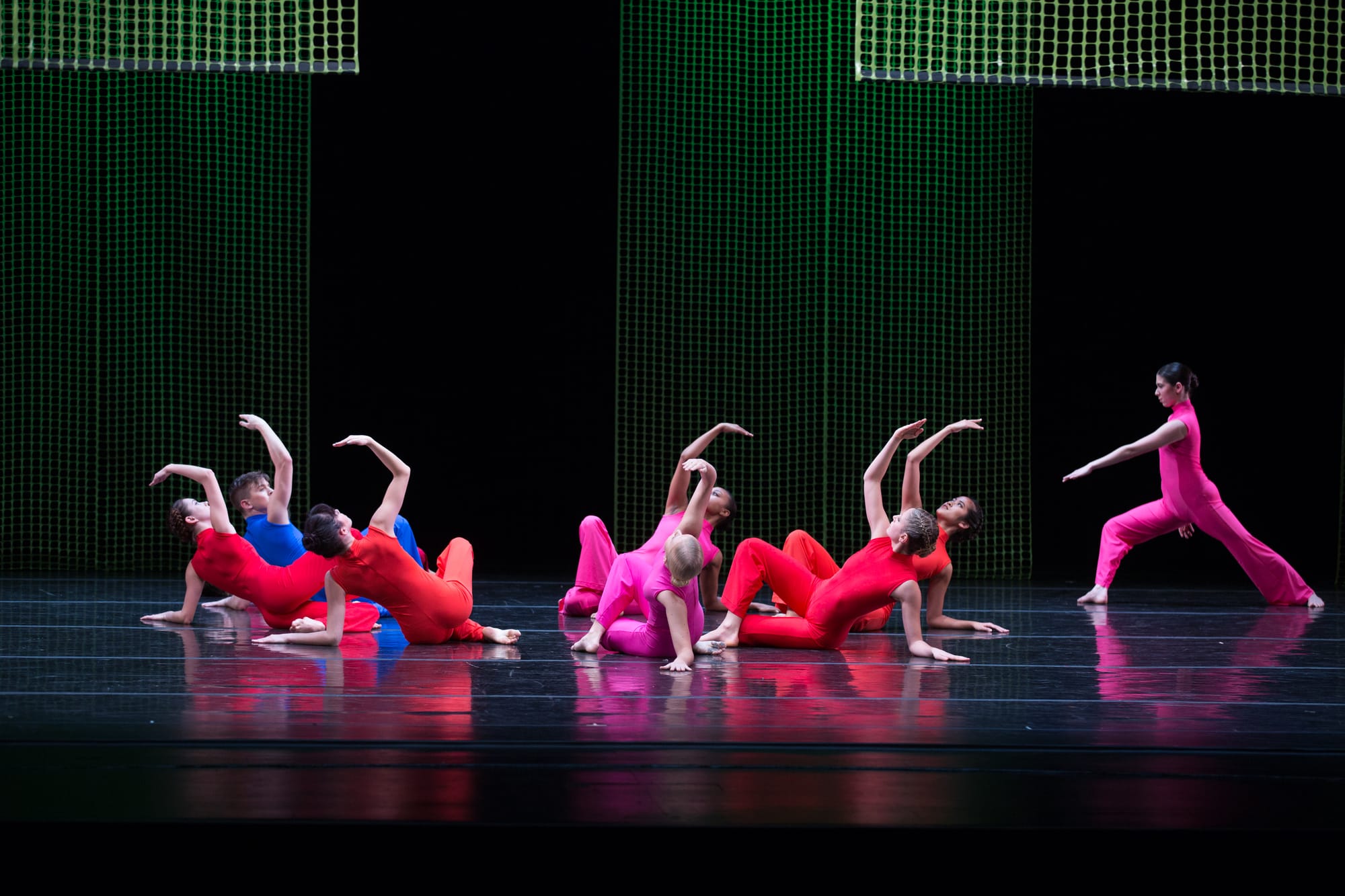 Tanowitz's "thunder rolling along afterward" was a complete change of mood, which Masten's colorful jumpsuits captured. The work, set to Andrew Norman's 2010 "The Companion Guide to Rome", based (according to his website) on his impressions of various Roman churches, may have used his architectural inspiration as a starting point. It was geometrical, unexpected, and without human emotion, celebrating the dancers' impeccable technique. It seemed to be about contrasts, with quick jumps followed by calm balances; the women were in warm colors and the men in cool ones. The dancers were pure shapes and forms--according to the program the men and women will switch roles in some performances. This cheerful lack of meaning went on a bit too long, but it's unexpected quirkiness was a lot of fun.