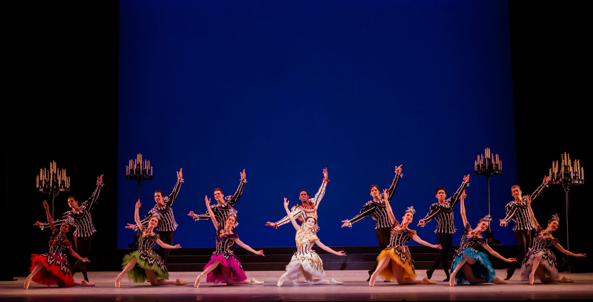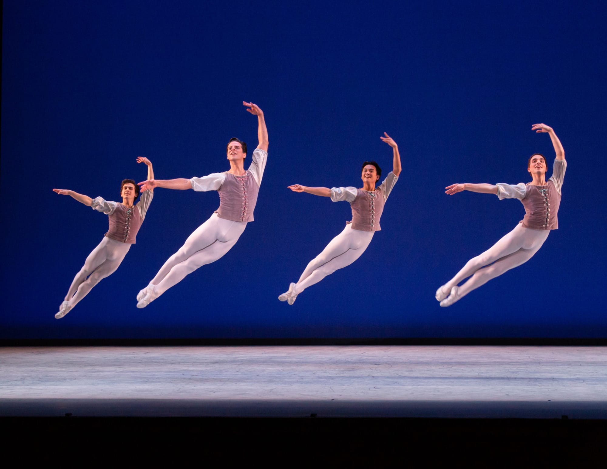It is a fun program, the Balanchine and Ashton (and Kent) quintuple bill that The Washington Ballet is flaunting this February week. An audience that seemed to fill the theater enjoyed itself from start to stop – especially the stop: Balanchine’s “Slaughter”, which isn’t one of his sublime masterpieces. I’ve seen many performances of it but never a better one. It is a “character” ballet with the gals not on toe but in heeled shoes and the only academic danseur a comic lampoon. Yet this choreography as danced on Thursday night revealed the classic steps and stances that are at the core of all the shimmying and shaking and hoofing by Sona Kharatian as the striptease girl, Daniel Roberge as the tap dancer, their cronies and combatants. Whatever else artistically and commercially these five dance pieces achieved, there was satisfaction!