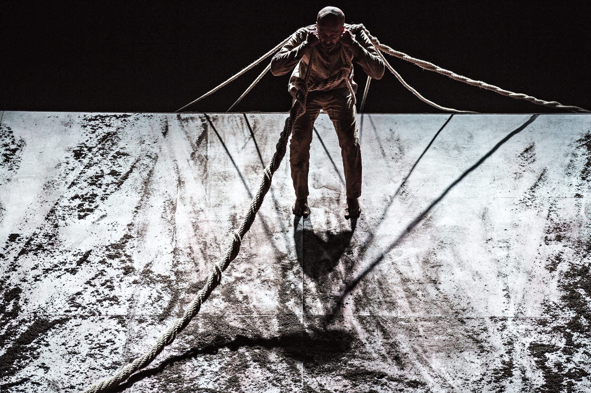 As the dance ends, he slowly removes the strings of bells, and the familiar trappings of home disappear from the scene in a rush. The dancer is suddenly left at the bottom of a barren slope of no-man’s land. From that point in the dance any sense of logic and groundedness is left behind. In its place, we see a kaleidoscope of impressions of the soldier’s experience of drudgery, danger and fear, always overridden by a sense of confusion as to where he is or why he is there.