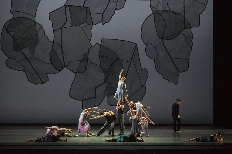 "Chamber Symphony" has the clearest narrative of the three, as it examines the composer, his three wives, and the agony of inspiration. There have been other ballets that portray the solitude of a specific creator, most notably Robert Schumann in Balanchine's “Davidsbündlertänze” and Sir Edward Elgar in Ashton's "Enigma Variations". These works are oblique and illusive, making their most powerful statements with small gestures and powerful music--walking away or looking at the twilight. Ratmansky's Shostakovich (Jeffrey Cirio in the performance) tends to roll around in agony, showing off his chest. Cirio shaded his performance well, dancing with a powerful commitment, but I missed a feeling of defeated heroism. His final walk off the stage, stunning though the stage picture was, seemed a bit hangdog, a defeated man rather than a genius wronged.