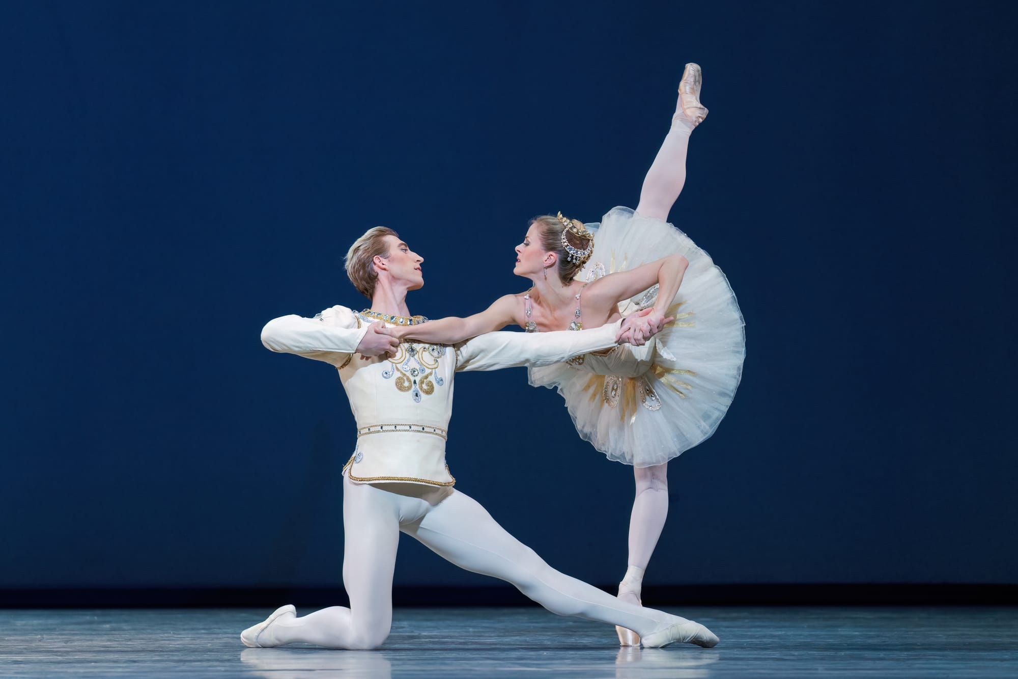 Often overshadowed by the brash and bold “Rubies” or regal and majestic “Diamonds”, “Emeralds” is known for its understated elegance. It whispers rather than shouts. In this performance, the lush and romantic opening act was actually the most affecting and had the strongest cast. As the leading couple, Svetlana Lunkina and Spencer Hack were responsible for much of the success of “Emeralds”. Lunkina embodied grace and lyricism with a touch of mystery in the Violette Verdy role. She invites you into her inner world. Like a unique and subtle perfume washing over you, Lunkina’s dancing is intoxicating. While the steps are not showy, she highlights the intricacies behind them by playing with the musicality, as if slowing and speeding up time at will. Her balance is incredible, allowing for long holds on one leg and beautiful suspension with the series of développés moving forward in the first variation, silk tulle tutu swooshing a millisecond later. Deep, luxurious back bends and soft, wafting arms ensured every movement felt sweeping and inevitable. Hack was well-matched with Lunkina, taking a similar approach and bringing out the dynamics in Gabriel Fauré’s evocative music. His jumps have great height and silent landings, while his turns are crisp and centred.