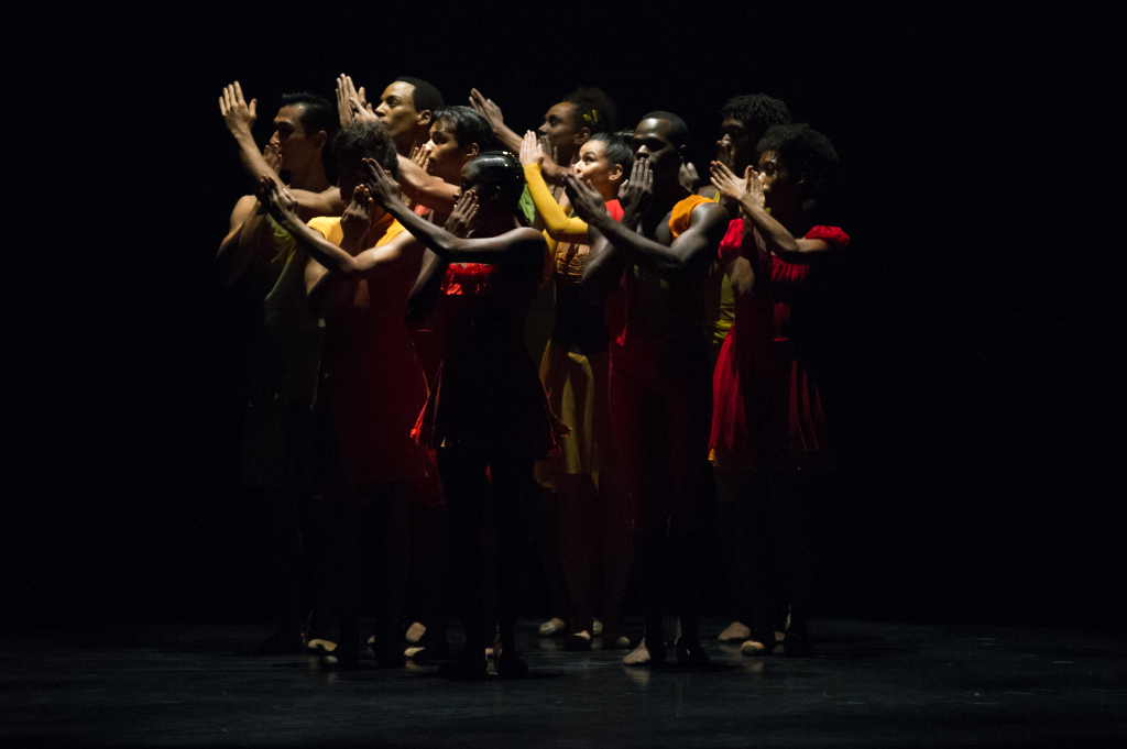 By contrast, the world premiere of “Balamouk” by Annabelle Lopez Ochoa was a kaleidoscopic assembly of different dance styles bursting to get out and sucking the viewer in. The ten Dance Theater of Harlem performers began in a group in the center of the stage, moving their hips and arms, and bringing their hands to cover their mouths in a silencing motion. Soon enough one of them rebelled against that silence and conformity erupted from the mix and set the work in motion. For the rest of the ballet, the different dancers and couples varied their moves from classically inspired steps to those laced with rumba, and everything in between (there was even a brief moment with swan-like arm movements!). The music was a recording by Les Yeux Noirs, Rene Abry and Lisa Gerrard, and the layering of styles was as colorful as the costumes, and really showcased the dancers well.