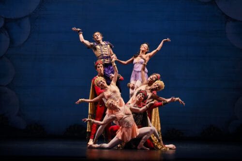 It is beautifully crafted and the dancers look lovely, but it did seem a bit generic--the dancers weren't really individualized, despite the usual odd man out (in this case, Michelle Fleet, who does end up with James Samson). Michael Trusnovec and Laura Halzack, though, stood out in their formal, courtly pas de deux, and the piece had a peaceful, hauting golden glow.