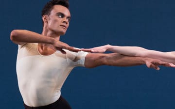 “In the Night”, danced in the middle of two imposing works, felt a bit like a tiny hill between two mountains. It is basically a collection of lifts superimposed on some often over-heated sentimentality, but engaged dancers can give it resonance. Few dancers are as engaged as Indiana Woodward and she and Joseph Gordon, as the opening couple made the most of the wispy choreography. Woodward held her backbends, as her arms stretched, with emotion seeming to flow out of her fingers.
