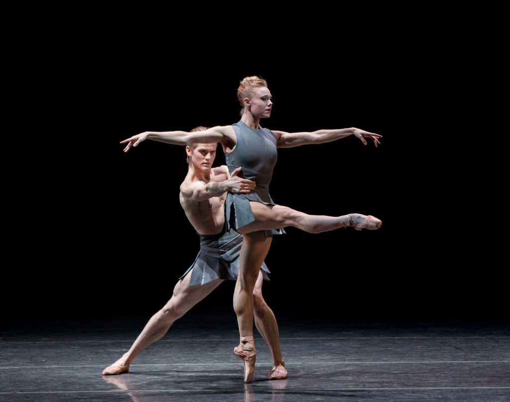As exciting as this finale was, Lidberg’s "The Shimmering Asphalt" was an equally worthy and, one might say, necessary addition to the company’s repertory. The title of the ballet was evoked on stage in two ways – an obvious one, with the dark backdrop shimmering at the beginning and end of the work, and a far more interesting one, where the dancers themselves appeared to sparkle with movement that syncopated the steps of the various cast members. The tone of the work remained uniform, as did the grey costumes, with a tender duet for Rebecca Krohn and Russen Janzen and a moving meditative solo by Sara Mearns making the biggest statements to the commissioned string score by David Lang.