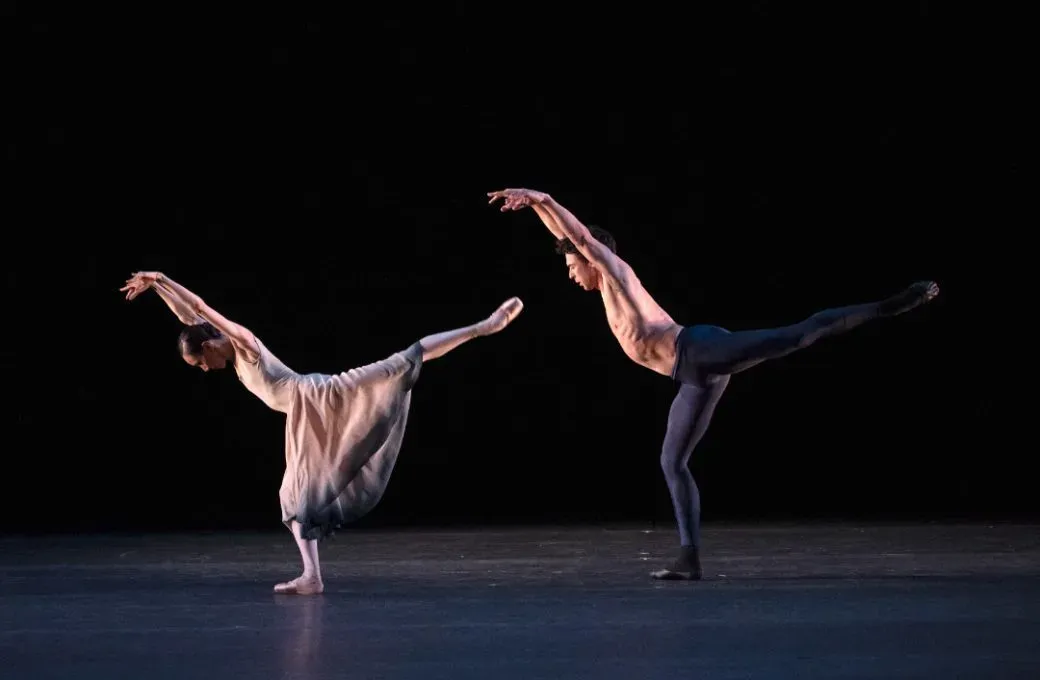 Hee Seo and Thomas Foster did not skip through “Nuages”, they flowed slowly and softly through the melting choreography; it had the fascination of a beautifully lit lava lamp. Seo’s light, boneless quality and supple back illuminated the shifting shapes and the many stunning but not overly-complicated lifts were handled by Forster with a gracious ease. There were brief hints of drama—the couple opened with their backs turned to the audience, seemingly oblivious to each other, and it ended with them in a pool of light going their separate ways, but it was an elegantly flowing lollipop, enjoyably sweet and welcome anytime.