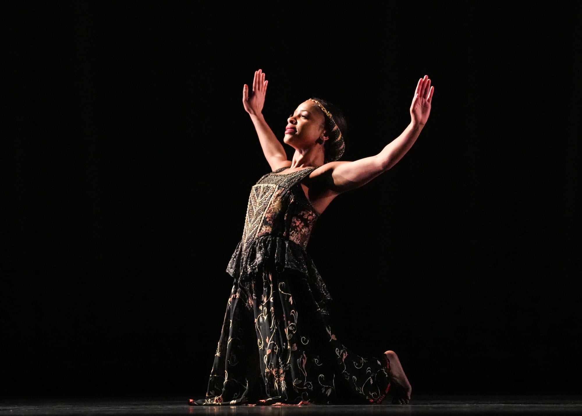 Jada Pearman’s solo was especially powerful; Jennifer Tipton’s lighting seemed to turn the backdrop into a dark wintery forest as a wary Pearman, falling and rising, her arms seeming to reach for something unattainable. She danced with a concentrated dramatic power and was both delicate and overwhelming. But as in so many Taylor works, there was light mixed with dark, and the dancers gave the formal, almost Baroque shapes a sense of a bright community, as the men, led by Harnage, leapt through the Presto, tossing moves back and forth. Even the restrained final pas de deux, danced by Jessica Ferretti and Devon Louis, ended with a calm rapture, as they leaned their heads so calmly and confidently on each other’s shoulders.