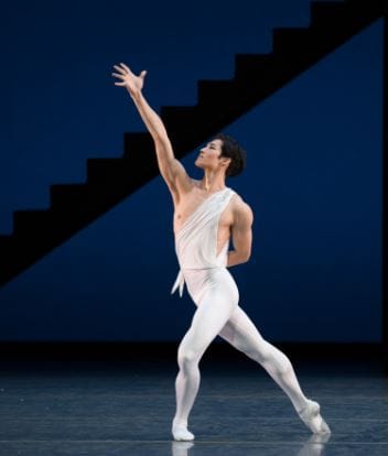 The greatest pleasure of this "Apollo" was having its narrative arc, and full score, restored, though there were others. Melanie Hamrick as Calliope took a moment before beginning her solo to review the text on her scroll. The poem for Apollo has a past. Hamrick is also one of the few dancers in the role to understand that its alternation of drooping and upbeat reflects the ebb and flow of inspiration. In Polyhymnia's solo, Katherine Williams nailed the turns into arabesque rendering them a sign of her increasing abandon and confidence in her ability to remain mute -- unfortunately misplaced. Stella Abrera's Terpsicihore was the epitome of quiet confidence and lucidity, her solo and the adagio unfurled in a seemingly uninterrupted arc. That Apollo singled her out was inevitable. As Apollo, Joo Won Ahn, went from teetering newborn immediately to a god, rather than growing up while seated on that stool at the side of the stage. He has the right body type for his choice, princely rather than demi-caractere. How he'll develop that choice is up for grabs. And who knows when he'll get the chance. "Swan Lake" will show up every year when ABT plays the Met, but the content of mixed bills is transitory.