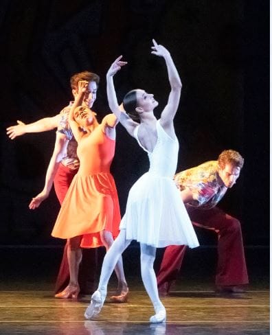 "Let Me Sing Forevermore", performed by Aran Bell and Catherine Hurlin, is a purpose made duet which served its purpose; Catherine Hurlin won the Erik Bruhn Competition in May. Set to three selections from the American songbook sung by Tony Bennett, It began well enough but, in the second movement, looked more like a skating routine than theatrical dancing whether Broadway or classical. (The dancers were in jazz shoes and sparkling dark blue costumes.) The final movement flailed as Bennet intoned "I've Got Rhythm" as though repeating a base beat. Only eight minutes long, the duet was completely dependent on Bell and Hurlin's youth, charm and good humor. They deserve better and in "The Seasons", they got it.