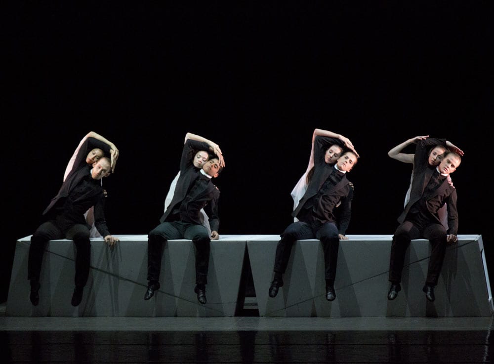 Angelin Preljocaj's "Spectral Evidance", on the other hand, was full of meaning, not all of it clear. The introductory film mentioned the Salem witch trials, and the four men (in black with slicked back hair) looked quite severe and judgemental. The four women wore white nightgowns with bloody skeleton's etched on them, and seemed to be variously victims and aggressors. The setting, four white boxes, was stunning, as they moved around, reflecting the light, suggesting at various times, a barrier, a pulpit, or a coffin.