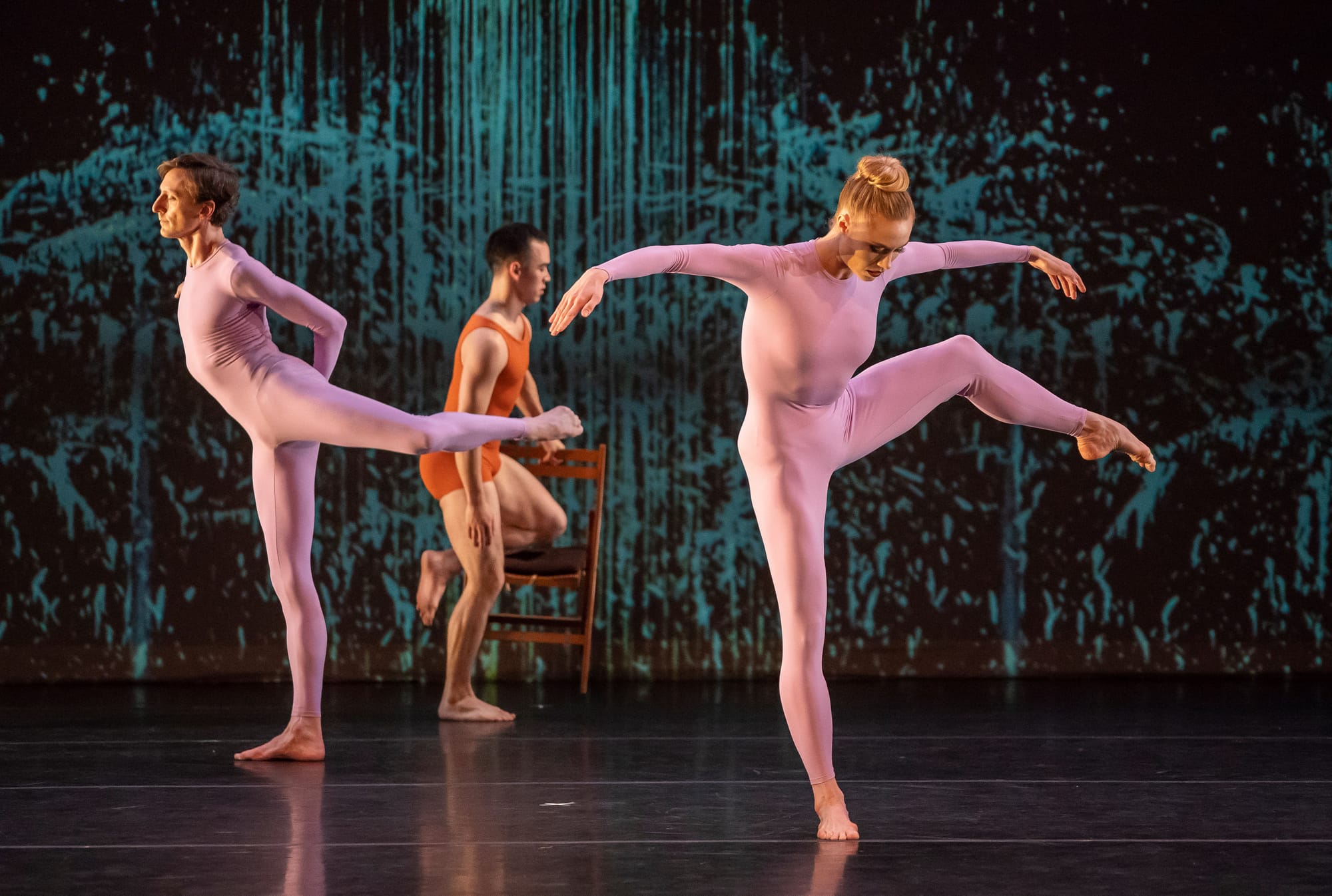 In these “events,” the solos themselves were the elements woven into a new fabric, a new work. The dancers, who each learned four solos, were arrayed in pairs, trios, or larger groupings, entering and exiting over 90 minutes of movement. Sometimes the solos echoed each other as leans, arabesques, or lines of movement seemed vaguely parallel, though they represented individual works. In Cunningham’s way, the music was entirely separate from the constructed dance. The dancers didn’t rehearse or even hear the beautiful bespoke score by John King until the performance itself.