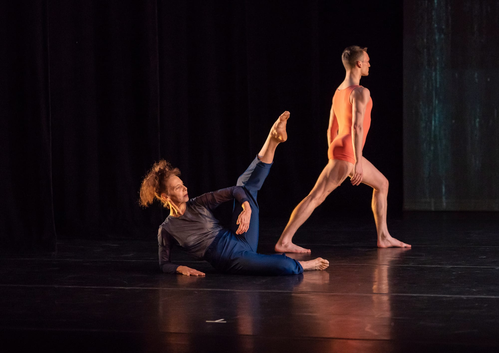 Soloists often simply walked on (or off) the stage to enter the scene (with some witty exceptions, like the bicycle tour around the stage by Keith Sabado, and the periodic placement of a folding chair upstage for a dancer to move around and into, then lounge as a new audience member.) Patricia Lent, who masterfully combined the solos in her staging, wasn’t limited in her vision of “100 Solos” – the dances were both individual and in service of something so much larger. In one of the many beautiful grouped scenes, Vicky Shick gently placed her cheek in the palm of Sara Mearns’ hand; and Mearns moved on, to lay her own cheek on the hand of a third dancer. Breaking the rules of “solo” offered many rewards.