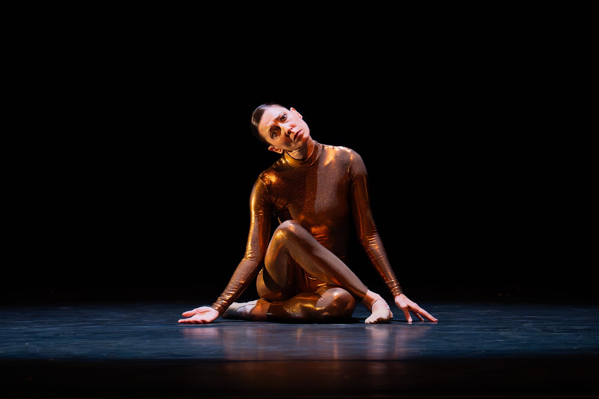 But not all the animal themes were happy ones. Beamish’s “The Golden Turtle” was about the “inner turmoil of species experiencing habitat devastation and poaching as part of the illegal turtle trade,” and was dedicated to the Burmese roofed turtle species which is near extinction and which vildwerk. works to save. Dancing a solo, Mara Galeazzi expressed a dizzying array of emotion that could not leave one indifferent. There was joy, but also so much confusion and fear, like in the moment where she covered her face with one hand to hide, just barely peaking out at the audience. Galeazzi’s beautiful plasticity conveyed a happy, but also curious existence. Drenched in a gold, conspicuous shell of a unitard, she looked too beautiful, too alluring, and also so fragile.
