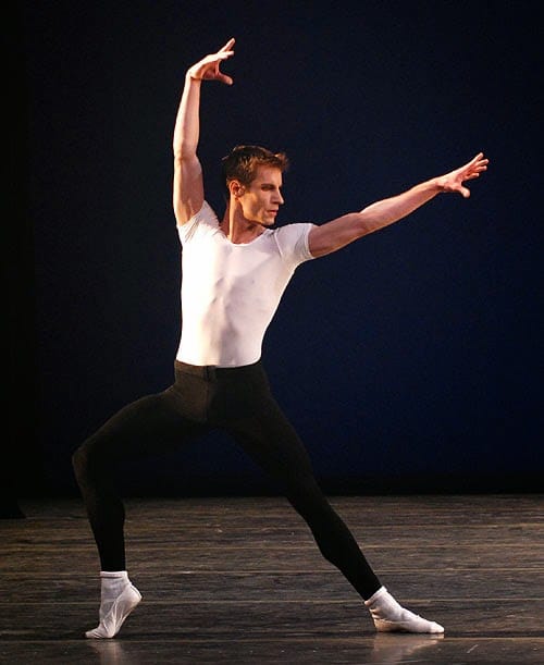 Savannah Lowery and Jared Angle were the black and white couple trying to find their balance, even when upside down. Rebecca Krohn and Russell Janzen (in his debut) danced the Bach-infused Ricercata. Janzen had a noble and restrained dignity but Krohn, though the shapes she made were lovely, wasn't able to convey the towering power that can seem just by lowering her arms to create complete harmony.