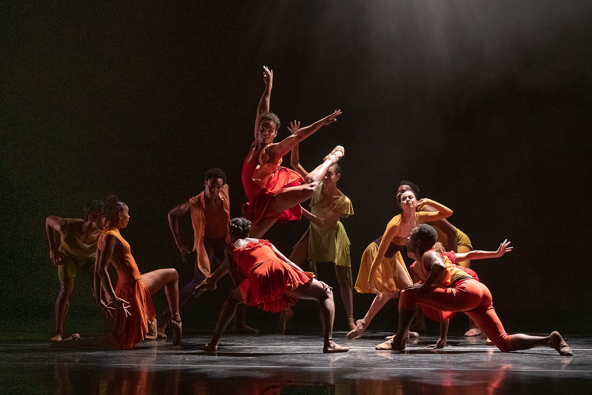 The company’s appearance at Jacob’s Pillow this past week stressed its breadth in works by choreographers that ranged from George Balanchine and Christopher Wheeldon to Darrell Grand Moultrie and Annabelle Lopez Ochoa. On the classical end of the spectrum was Balanchine’s “Valse Fantasie,” created in 1953 for New York City Ballet. This is an extended pas de deux, to music of Glinka, for a couple accompanied by four women. It is, as the title indicates, a waltz in a romantic vein. The dancing is full of bounding leaps on the first beat, using the next two to catch up. It calls for high energy, sound technique, and a touch of bravado. Crystal Serrano and DylanSantos danced it with all the lightness and joyousness it demands.