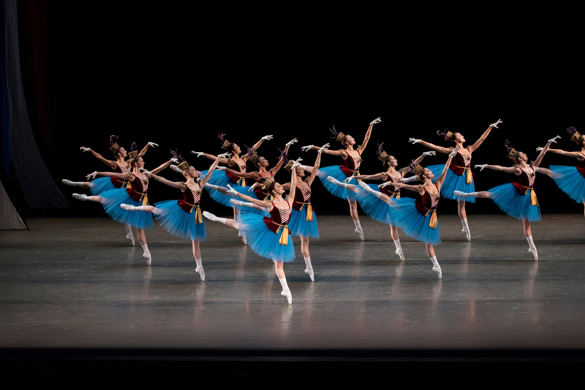 So it was a relief to have the curtain rise on "Stars and Stripes" one of Balanchine's most exquisitely wrought – and most reliable – applause machines. Here again, the quality of the performances varied. Both Erica Pereira and Daniel Ulbricht are veterans of their parts and danced them respectably. Perhaps they need a break or perhaps age has blunted some of their spark. Ulbricht can still reel off double air turns like nobody's business (as could the dozen guys behind him) but the glee of being able to do so was missing here. Emily Kikta was newer to her role leading the 'Rifle Regiment'. She danced big and had fun, but phrased beautifully, revealing the rock solid base of the humor and, as in "Judah" though at greater length, the expressive potential of classical ballet.