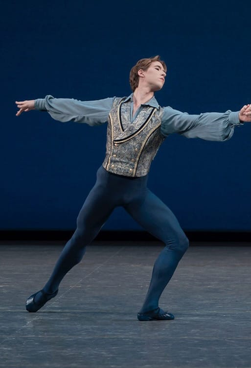 His muses (Mira Nadon as Terpsichore, Isabella LaFreniere as Calliope, and Emily Kikta as Polyhymnia) were also dancing their second performances. Nadon gave an astoundingly accomplished performance. Her Terpsichore was a guide, a companion, a teacher and their pas de deux seemed like an exalted and rational conversation. LaFreniere got the hint of modernism in her solo with its oddly literal movements. Kikta had a bit of trouble with the fast turns into arabesque—those long, glorious legs couldn’t quite move quickly enough. I did miss the feeling of fun their bouncy dance together can have and it had a bit of the frozen “Gosh, I’m in a masterpiece” look, but overall, it was a fine performance.