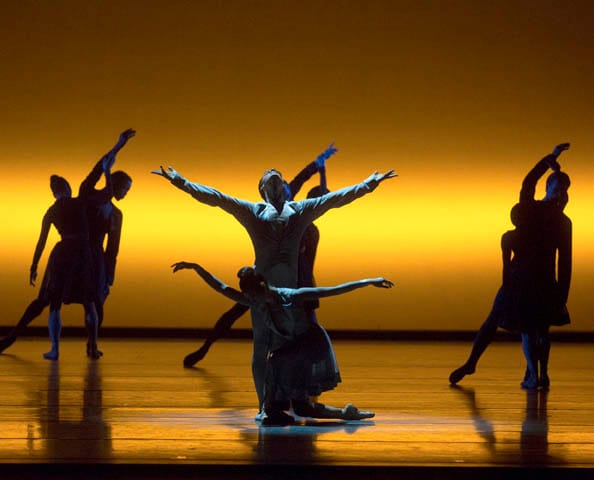 Christopher Wheeldon's "Thirteen Diversions" was more of an advertisement for the music, Benjamin Britten's "Diversions for Piano and Orchestra". Despite some stunning visual effects (especially the black silhouettes against a golden glow) and the energetic dancers (Zhiyao Zhang stood out for his noble and liquid dancing) the energetic frenzy of the four couples and large corps could not match the blazing energy of Britten score.