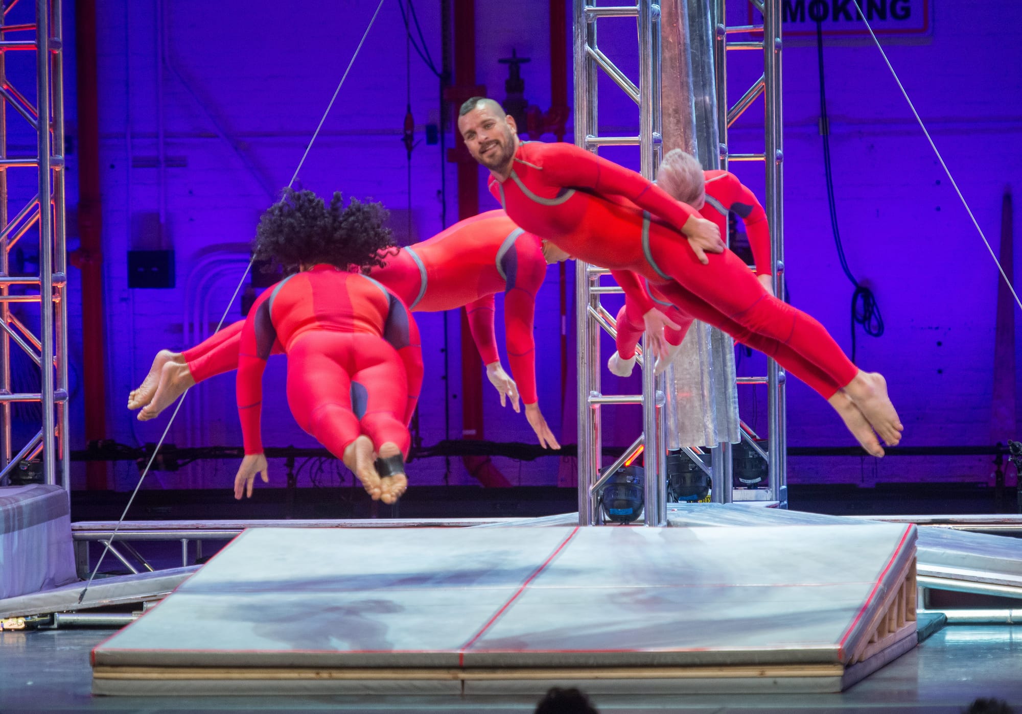 “Airslice” contained two parts. The first one was presented with no music and a slew of geometric patterns formed by four of the nine dancers falling onto the microphoned (and padded) wooden platform. The performers would assemble themselves vertically, balance, and then fall flat to the ground creating squares, lines and angles both in the air and on the floor. Each of their falls was projected by the sound of their bodies hitting the ground – a sonic experience that at first was jarring, and only with time grew to enhance the overall effect. The performance then advanced with pumps of power to the second and most compelling aspect of the piece, which featured a rotating ladder that the dancers used to swing, balance and ultimately leap down from, to music by contemporary pop culture greats like Major Lazer. It was an exhilarating 30 minutes of a kind of freedom and power rarely displayed so casually and cordially. To be fair, the work straddled the lines between dance and acrobatics, and art and pure entertainment too, so carefully, that at times it felt like it could almost not belong on that stage; thankfully though, it did.