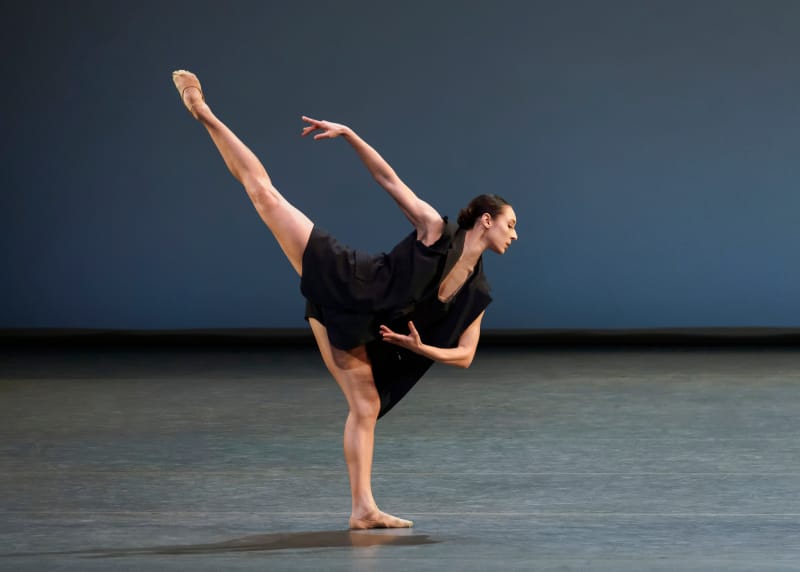 The middle of the program with Peck’s more recent works showed him as he is trying to step outside of the body of work of craftily assembled group dances that are intricate, light spirited and very obviously fun to dance. The Pandemic-era “Solo” to Samuel Barber's "Adagio for Strings" fared modestly as danced by Naomi Corti making her debut. It was brooding, sentimental, but overly introverted. While the steps and motions were all there, and filled with the right amount of energy, the emotions never projected out of Corti. We were witnessing the dance, rather than going through it with her or truly understanding what her solitary plight felt like and meant. All body waves, without meaning attached, even her slap of the hand against the wing wall failed to ignite real emotional resonance.