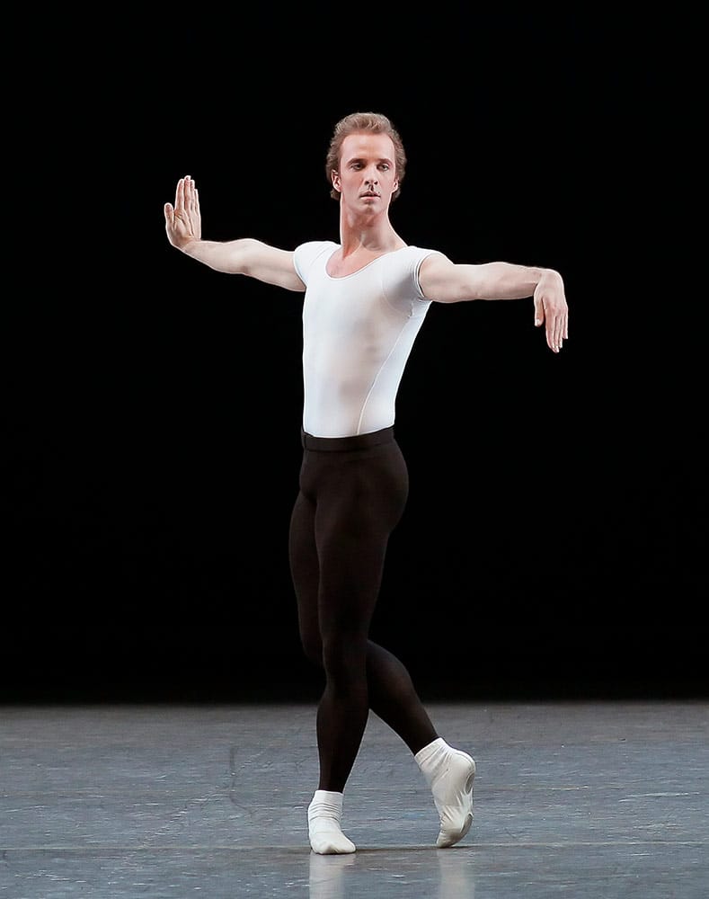 Balanchine was famously averse to stories, but Tchaikovsky's music for "Swan Lake", even when stripped of the narrative, is irresistibly dramatic. Tyler Angle and Sterling Hyltin danced the tragic couple. Angle is an instinctively romantic dancer with clear dramatic instincts and his Siegfried was both passionate and commanding. He was emphatic ordering his retinue to leave him alone to hunt and formidable when ordering them not to shoot the swans; his imperious authority gave his awed gentleness during the pas de deux a special resonance.