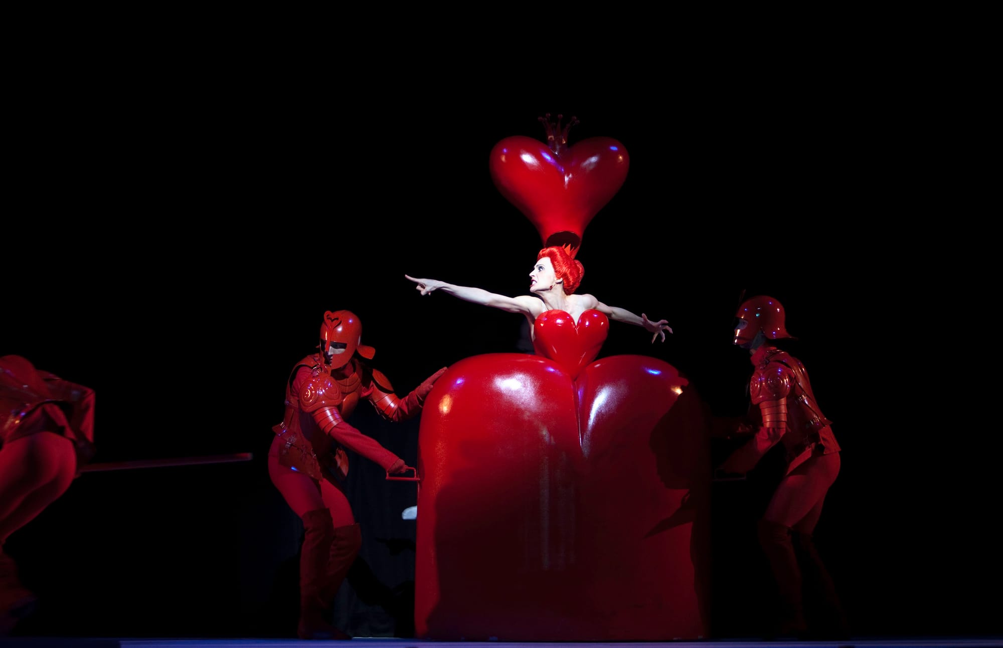 Despite the run time of 2 hours and 40 minutes, sustained dance sequences are few and far between. Prior to Alice's descent down the rabbit hole, she is at a garden party hosted by her parents. Guests arrive one by one, each with their own movement vocabulary that hints at their alter ego in Wonderland. Alice and Jack, the gardener's son and her love interest, enjoy some brief but sweet stolen moments together. Their feet shuffle sideways with alternating heel and toe in unison, an expression of budding affection. This motif is repeated in Wonderland, where Jack becomes the Knave of Hearts. Her stern mother examines Alice and her two sisters the same way she later examines the roses as the Queen of Hearts (although, as the Queen, the fingers across the throat "off with his head" gesture becomes a tad repetitive). There are moments of choreographic invention and movement shaped by character, but in a full-length work there really must be more. There are humorous moments, for instance when the corps de ballet as playing cards line up only to fall down on each other like dominoes. It creates an effect, but it comes from physical comedy, not from their dancing.