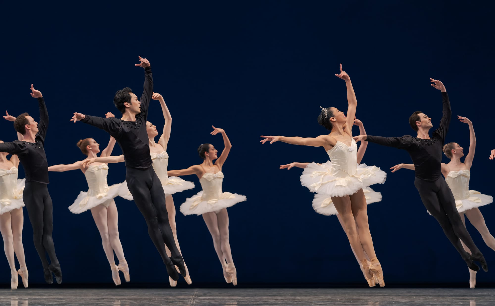 The headliner of the mixed program was Dawson’s austere and modern “Anima Animus”, created for San Francisco Ballet’s Unbound Festival in 2018. This is the first Dawson ballet to enter the NBoC’s repertoire. The name and inspiration for the ballet come from Carl Jung’s concept of archetypes and the duality of feminine and masculine energies that each person possesses. The trance-inducing violin concerto no. 1 by Ezio Bosso is rich and textured, while the minimalist black and white leotards designed by Yumiko Takeshima call to mind the yin yang symbol. The set is a cold white box that accentuates the shapes created by the dancers in Dawson’s choreography that includes exaggerated lines and flexed wrists.