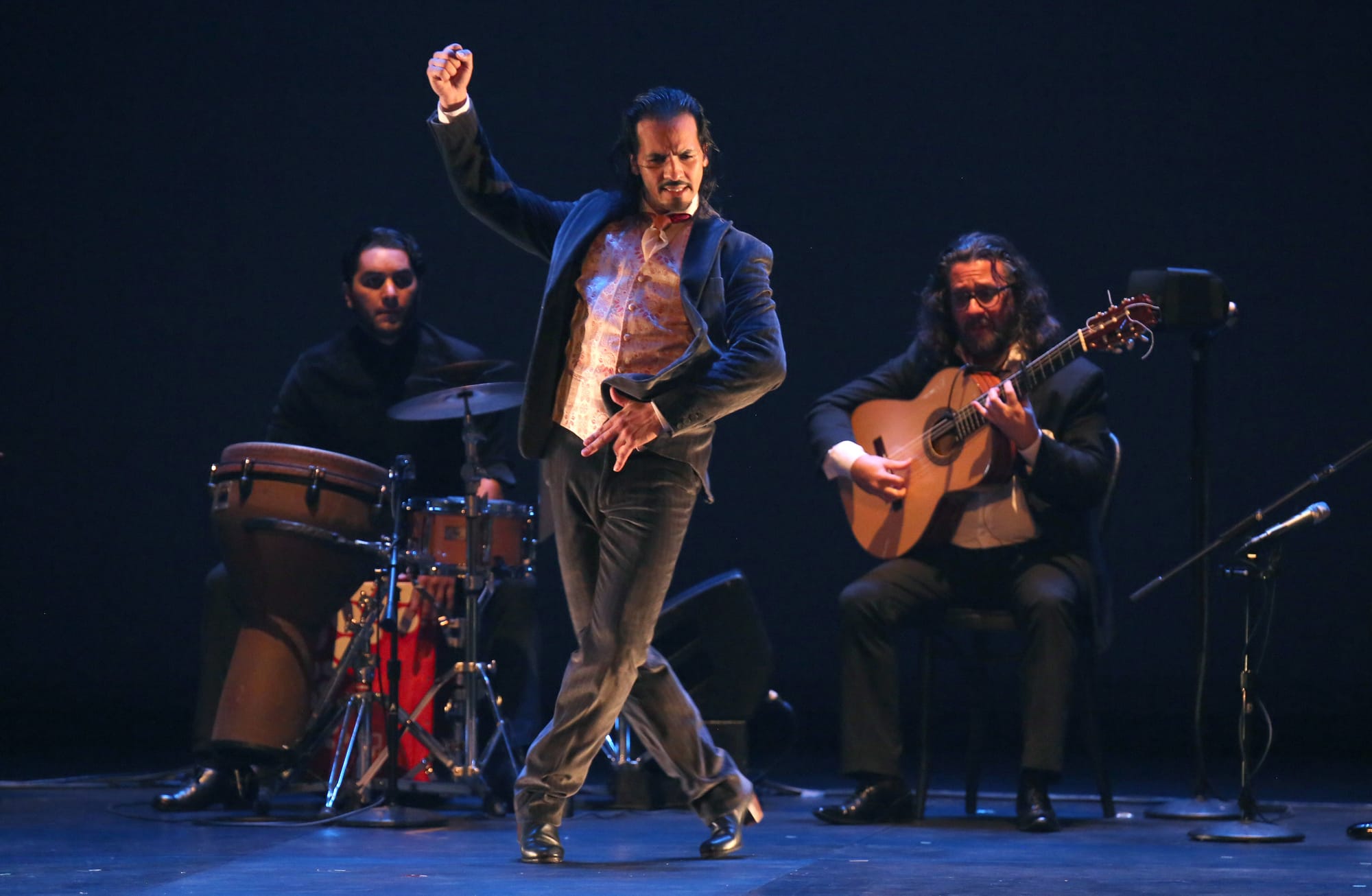 With each time he took the stage, slow, subdued taps exploded into eruptive movements, with legs swinging, arms flailing, uncontained. The freedom in his dancing was remarkable, and almost tricked the eye. The way he held his back upright read not as traditional flamenco prescription that demands that stance, but as yet another form of expression – of his dignity, fortitude and sense of self-worth – it was counterbalanced by the untamed movement in his feet which he allowed to flow freely upon the stage, giving the audience a full picture of himself, an insight into his character. He stopped often, sometimes to call on and soak up the audience’s applause, at other times to feel the next wave of emotional charge he was going to give his audience.