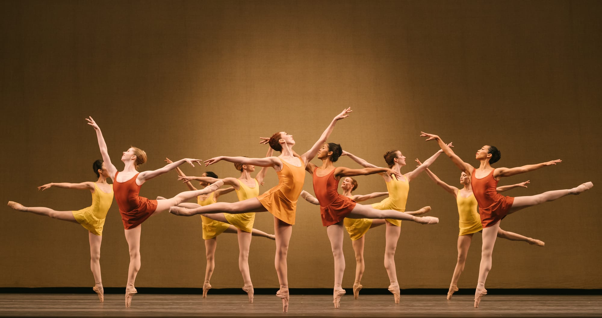 Montoya's "Crepuscular" explores the mystery and possibilities of twilight, using a selection of piano works by Frédéric Chopin and atmospheric lighting by Jeff Logue to set the mood. Created during the pandemic, its premiere was delayed multiple times with the changing restrictions and lockdowns. "Crepuscular" feels quiet and intimate, reflecting perhaps the isolation and introspection brought on by the pandemic. The stage is open and sparse and the dancers wear simple, minimalist costumes (by the NBoC wardrobe department led by Stacy Dimitropoulos) and soft shoes. The ballet starts in silence with a foggy scene and a group of scattered dancers looking up, observing. The group clears and makes way for a melancholic solo that becomes a dramatic pas de deux for two men, Jason Ferro and Christopher Gerty, to Chopin's famous "raindrop" prelude. The choreography is athletic with seamless floorwork that glides across the stage. Ferro and Gerty were well matched in energy and dynamics. Gerty, in particular, really committed to the more vernacular elements in the choreography. He was not afraid of looking awkward and it paid off. The colours shift to warm sunrise hues and there is a romantic pas de deux for Isaac Wright and Tene Ward. Ward was strong and expressive, while Wright was more understated but equally engaged. Finally, there is a a pas de deux for Kota Sato and Brenna Flaherty full of yearning, tension and acrobatic partnering. Small groups of dancers weave in and out between each pas de deux.