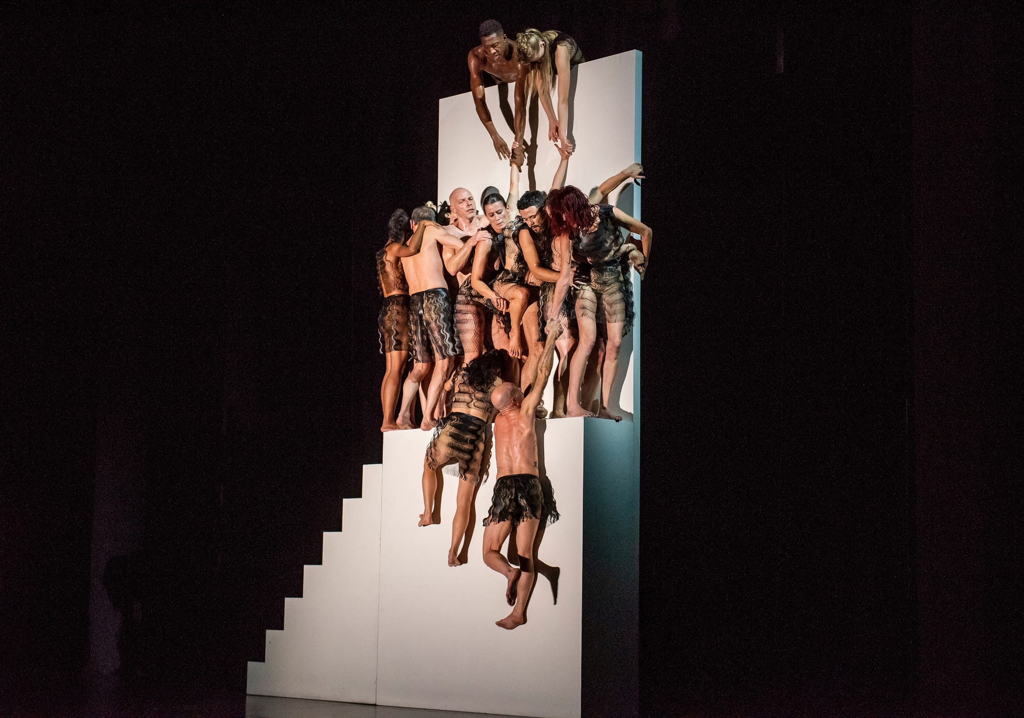 Waltz makes a point of collaboration, and certainly van Herpen’s costumes play an important part in the production, despite the fact that much of the time they consist only of the nude trunks already mentioned. In some sections, though, interesting black mesh tops and wraps are added, not to mention the arresting spiked costume.