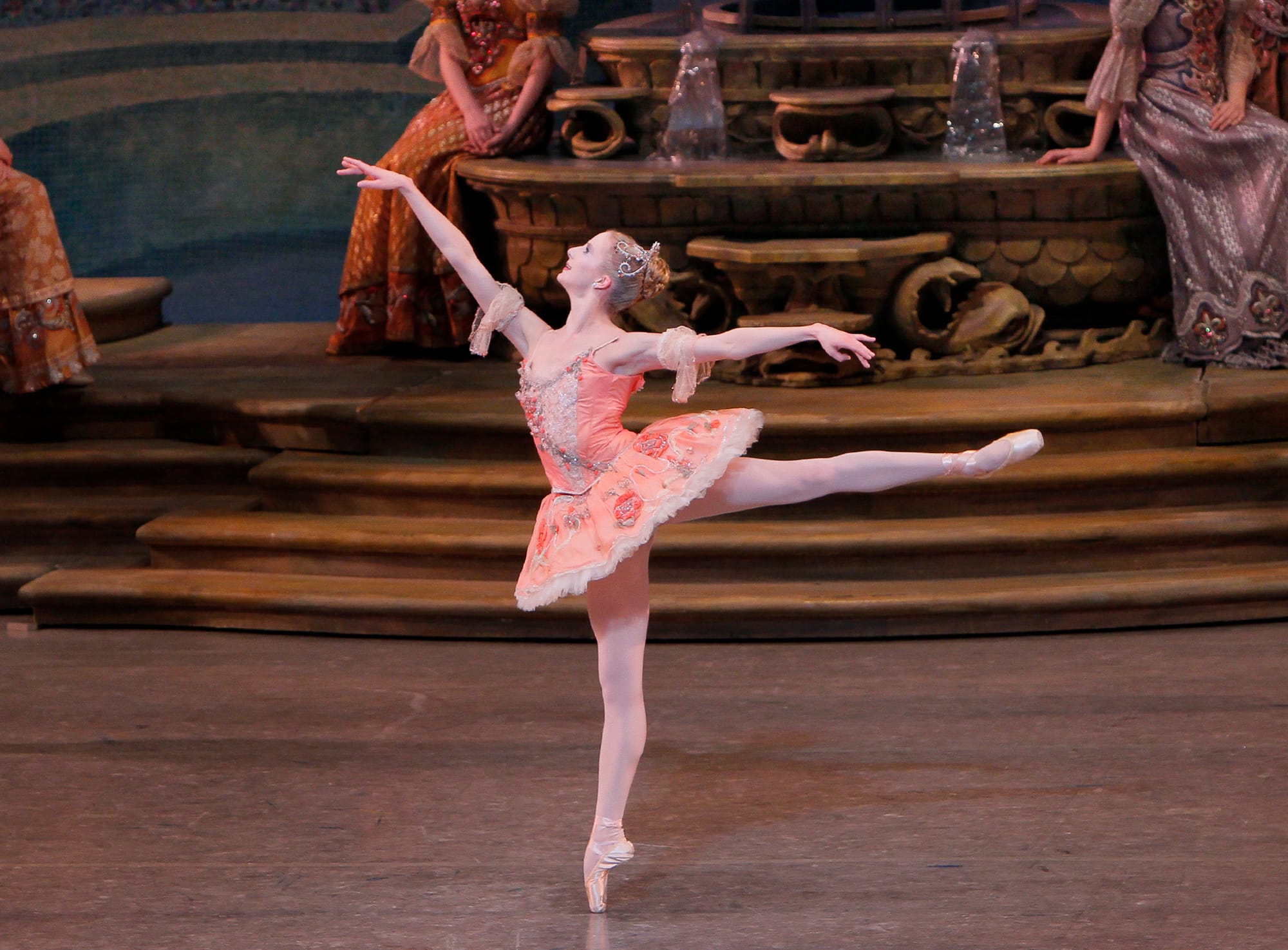 The impression that one was not dealing with a classical ballet company but instead a Broadway troupe began in the first act’s christening scene where the ensemble of courtiers, soloists and principal dancers did not know how to walk or to carry themselves with the dignity and aplomb that would suggest a Seventeenth Century court. From Adrian Danchig-Waring and Gretchen Smith as the King and Queen to the lowliest valet, the dancers milled about with slumping postures, excited, but comporting themselves as if it were a junior prom costume party at a Texas high school. But the structural problems went much deeper once the dancing started, as principal dancers, soloists and corps de ballet - with a few notable exceptions (about which more below) - danced with compromised classical placement and technique.
