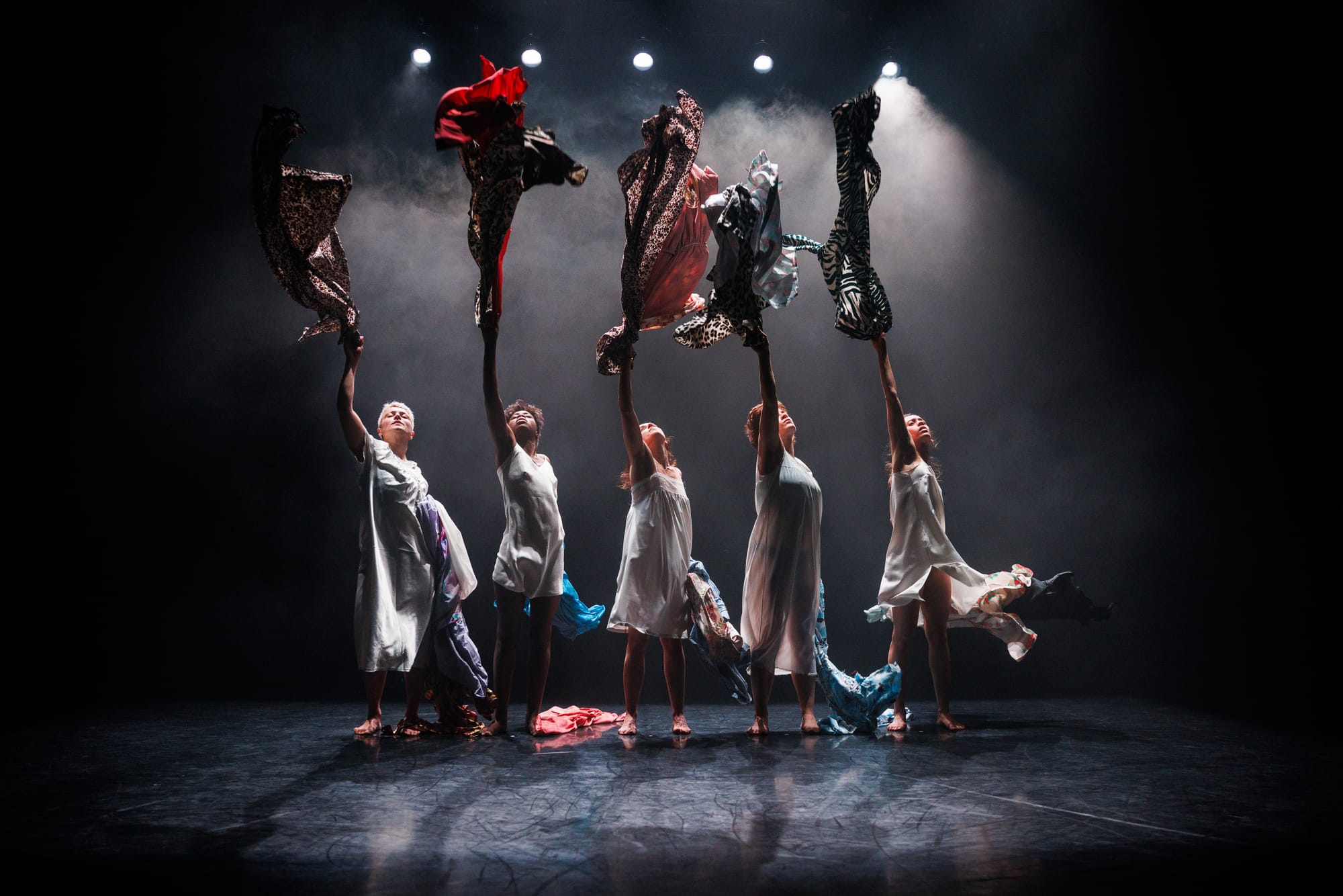 When the dancers found unison under a box of piercing white light, they unveiled multiple layers of dresses to bare themselves in simple white slips. Under a cloud of seeping fog, the feeling of unity surfaced. The dancers threw their dresses in the air like silks, celebrating their multifacetedness. "Maldonne" is a tremendously moving testimony to women’s strength as much as their vulnerability.