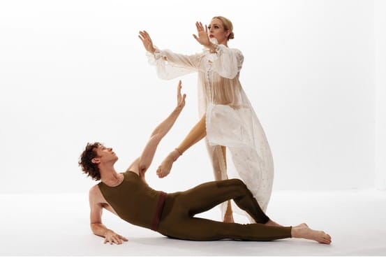 Fortunately, it was followed by "Mercuric Tidings", a triumphant explosion to excerpts from Franz Schubert's first two symphonies, led with joyful physicality by Trusnovec and Halzack. Their adagio again showed off Halzack's patrician beauty, as she flowed through Kleinendorst's arms; she might have been yet another elusive memory of younger days.