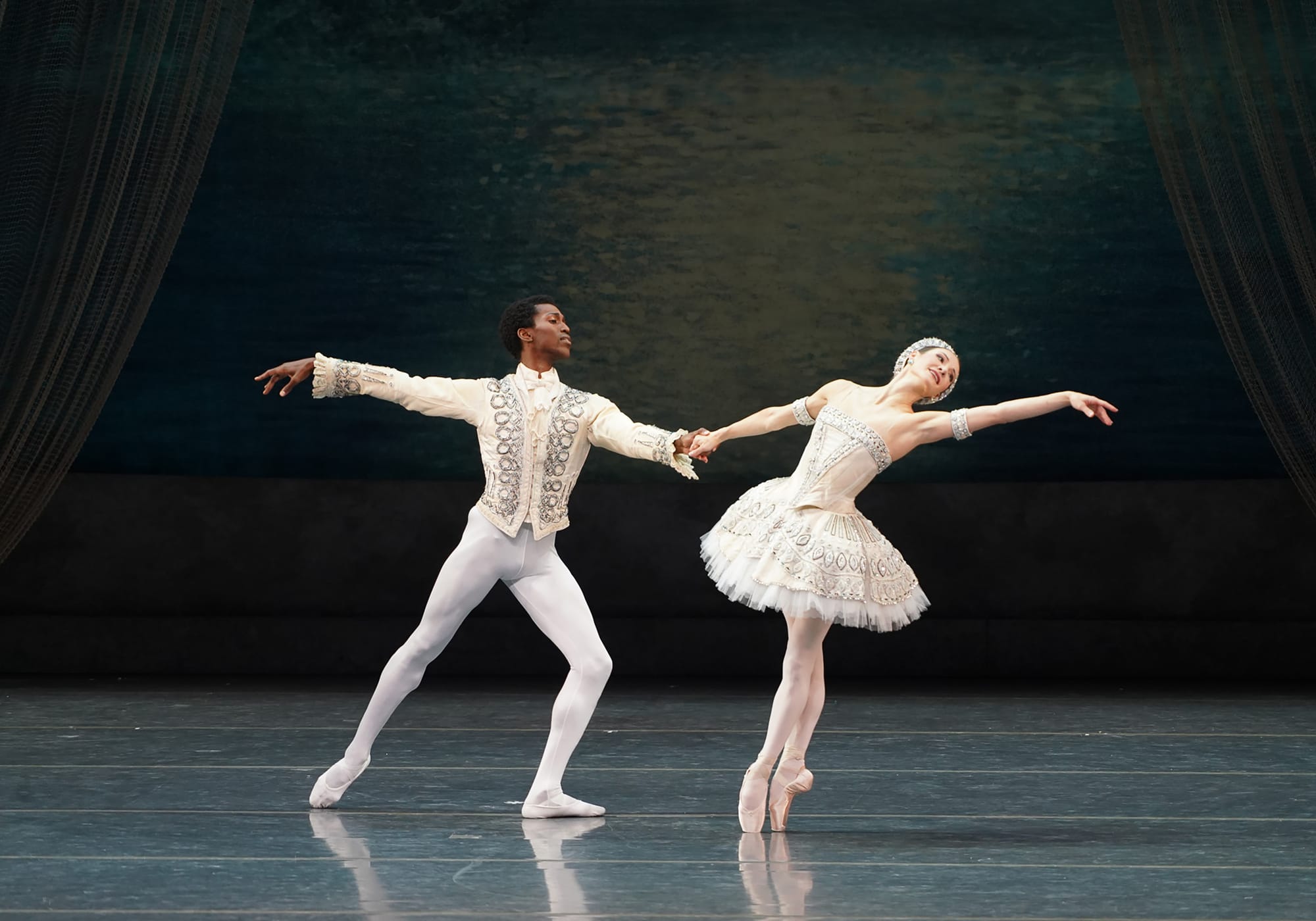 Royal to some extent had the opposite issue; his generous, engaging presence was often overshadowed by his technical issues. Though he can be a powerful force in more modern works, he does not have the line or the control, especially in his feet, for the more exposed classical variations; at one time he stopped a series of turns and posed until the music stopped. This was certainly a better option than coming unstuck, and his lilting melancholy as he searched in vain during the brief vision scene was direct and moving, but it was a disappointing performance. Misseldine was able to combine technical aplomb with warmth, and she used her long, strong legs and gracious upper body well, sailing through the tricky pas de trois. Though she did have a rather fixed expression, she is a dancer of natural authority.