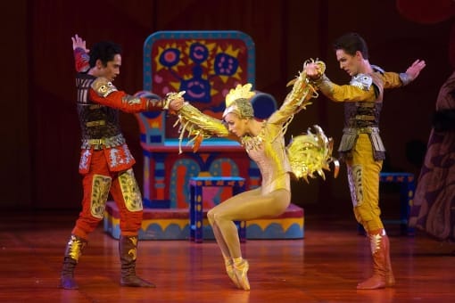 Veronika Part and Hee Seo cut beautiful figures as the seductive Queen of Shemakhan. Ratmansky made her a playful kitten, rather than the dangerous tiger the earlier photographs imply, but both versions have claws. I saw Skylar Brandt and Sarah Lane as the mechanical bird. The sharp, jerky choreography, with its twists and bends, is stunning and both were very good. Brandt was a bit brassier while Lane was a bit more three-dimensional but each had a dangerous and implacable inevitability as she destroyed the duplicitous Tsar. The political satire, still so relevant, is not forced but the bitter little story is not softened or romanticized. Greed, cowardice, lust, and deadly foolishness, wrapped in Goncharova's blazing sets and surrounded by Rimsky-Korsakov's lush music, remain unredeemed in this haunting, multi-layered and very adult work. There may be no heroes in the work, but the company put on a heroic performance.