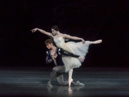 The Act II partnering is trickier, and the two overhead lifts were a bit tentative, while the lower ones, where Albrecht should look like he is cradling mist, looked a bit staccato. Lane, too, had a bit of trouble with the slow développés, but the rest of the adagio was seamless. Lane danced as if she had not yet quite shed her humanity, and her deferential bow to Myrta, so similar to her bow to Bathilde, showed the ghost was still a young girl. Though she may have gained a soul, her love seemed to keep her human and she, more than most Giselles, seemed physically to reach out for Albrecht. It was a moving performance, but not as emotionally wrenching as her Act I.