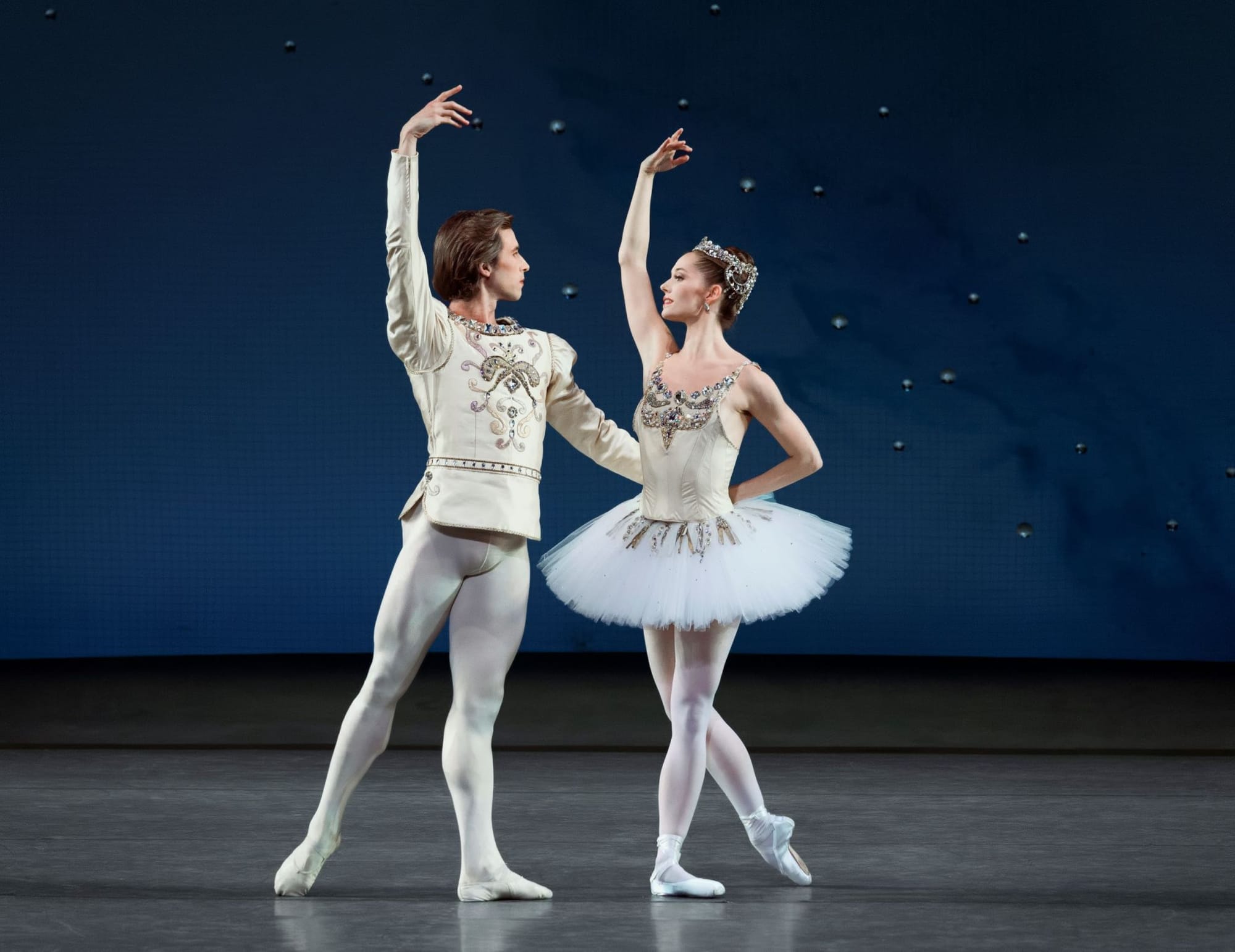 Her partner, Joseph Gordon, brought a noble dignity to his role—his slow opening walk made it clear the he understood who Siegfried was and that he might be a distant relative. His dancing was glorious, clean and strong, especially his manège and his secure, controlled turns a la seconde. But “Diamonds” isn’t just about technique and he needed a partner who could truly join the world he created.