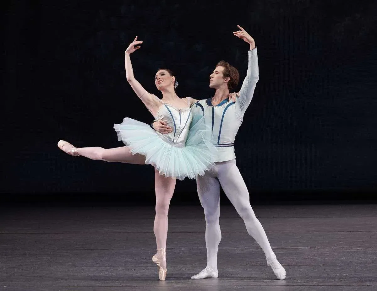 Peck’s two solos were magnificently varied, the first with shimmering points as she floated backwards, as if she were tiptoeing into perfect happiness and the second more gloriously confident, with the hints of Hungarian swagger in her folded elbows and swinging torso. Peck’s control and confident musicality are a perfect fit for this salute to feminine beauty, and it was a triumphant debut. Gordon also got two solos, each full of non-stop petite batterie, which he tossed off with ease elegance. His multiple turns to full stops in his second solo (Balanchine’s riff on the male pas de quatre from the original ballet) were especially elegant, and looked deceptively easy.