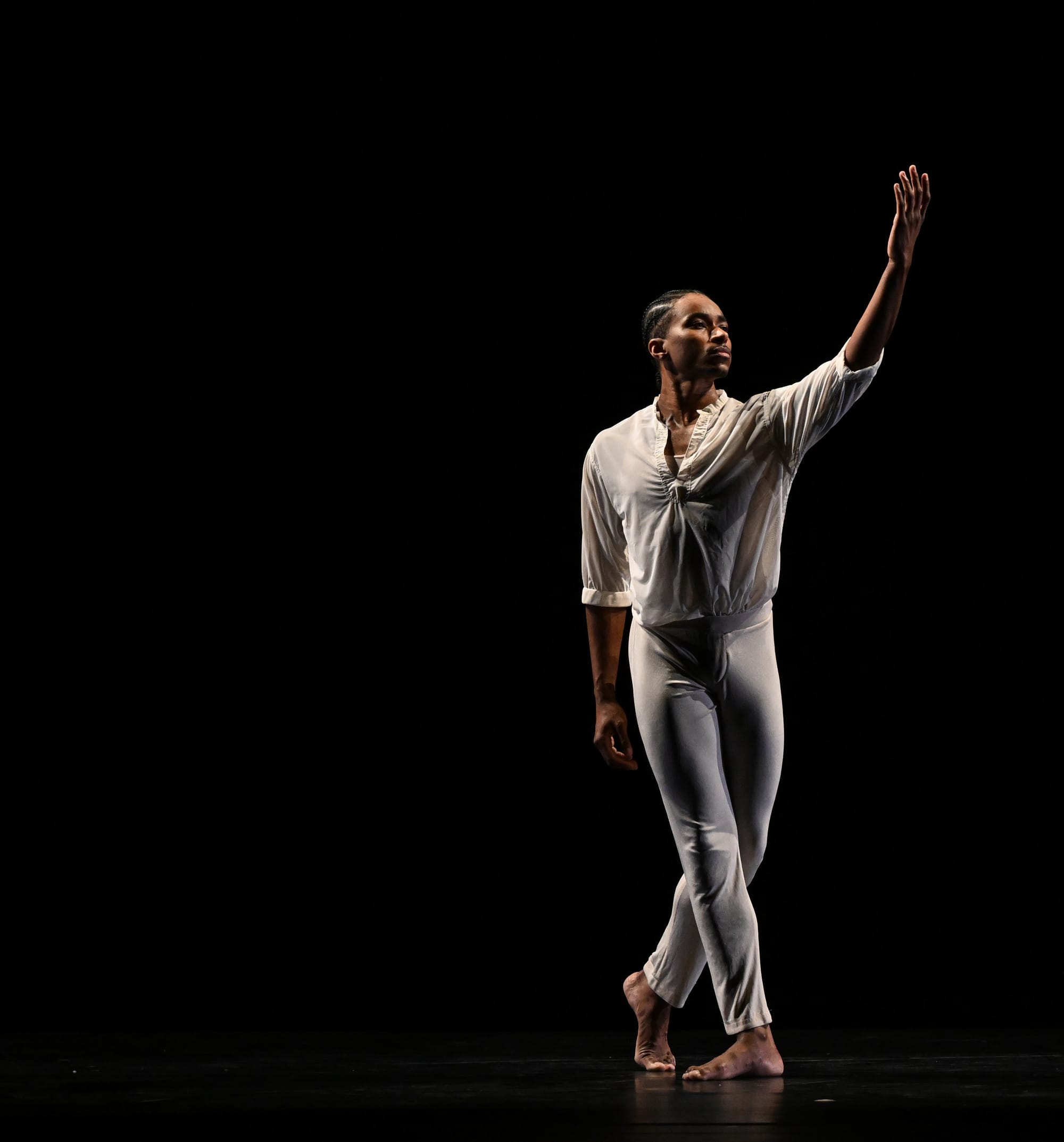 Patrick Gamble was especially strong in his solo set to Reich’s “Clapping Music”, lowering himself to the ground and then exploding upwards. Duveneck and Clayton had a jazzy verve and a great time playing at being the Nicholas Brothers. A more somber Jessica Ferretti and Devon Louis gave their slow, bluesy pas de deux a slightly wary edge, like a couple who had endured too much. Jada Pearman was buoyant and beaming as she danced to Mahalia Jackson singing “Down by the Riverside”; she could have bounded over from “Revelations”. These vignettes were stylish, musical, and distinctive, but the work didn’t really hang together as an expressive whole.