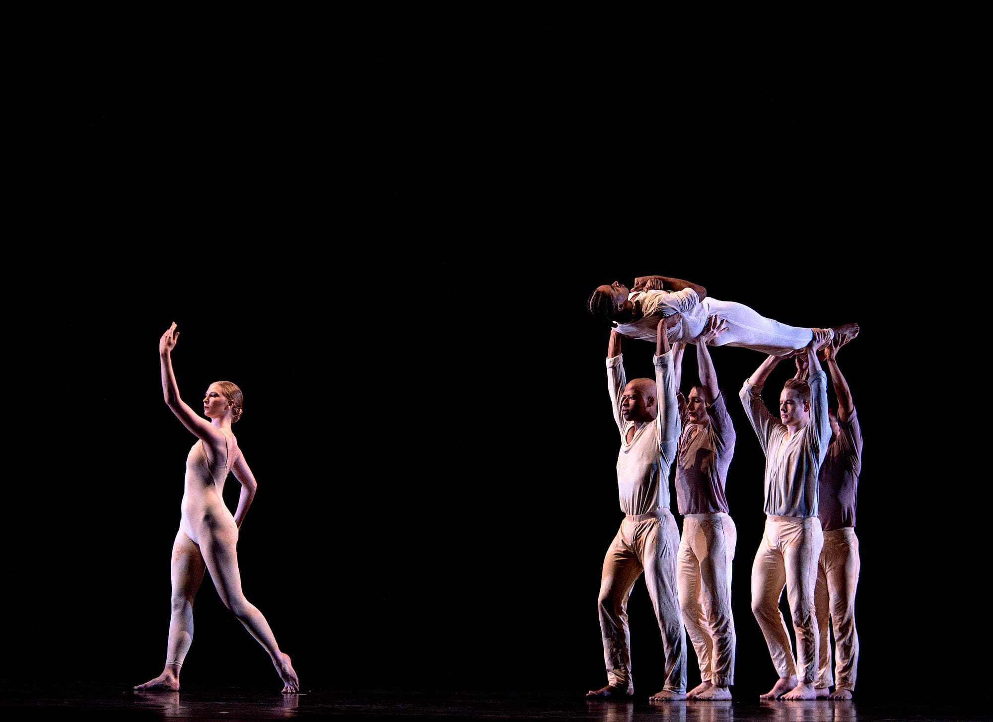 Eventually he was joined by the larger group for a get-together while he had a brief duet with Lee Duveneck which seemed to fizzle out when Gabrielle Barnes joined them. The finale was bright and energetic, with several dancers prancing through the loping Taylor runs, as if they were looking for “Esplanade”. The dancers certainly gave it their all, and looked strong and engaged, but it was a bit hollow.