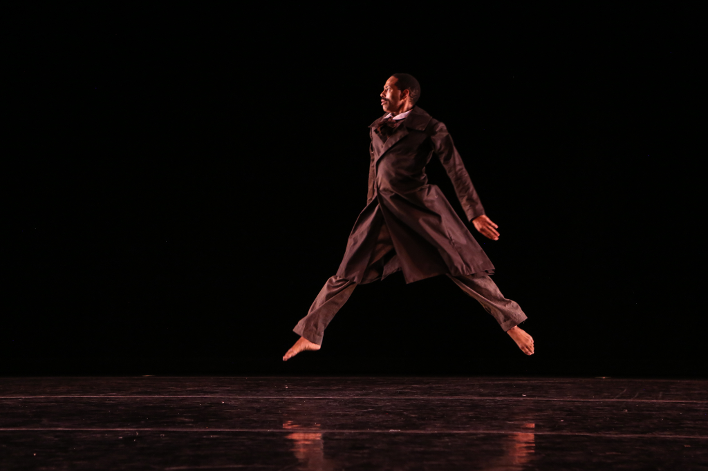 “The North Star,” by contrast, was almost a plot-driven work. Honoring Frederick Douglass, the work began with Steve Humphrey performing alone to Psalm 137, Douglass’s favorite psalm. After a beautiful and athletic solo, the next four parts of the work shifted to loosely tell the story of Douglass’s life. It was a beautiful tale of movement from slavery to liberation, to many accomplishments, including scenes where a younger Douglass is shadowed by the man’s more mature version, and scenes with Douglass’s wives. Along the way, the dance portrayed beautiful simplicity and polished refinement, with even bits of jazz adorning the presentation. The work’s last movement was a full celebration of the historical figure with the cast dancing joyfully in front of a Douglass’s statue placed in the back of the stage.