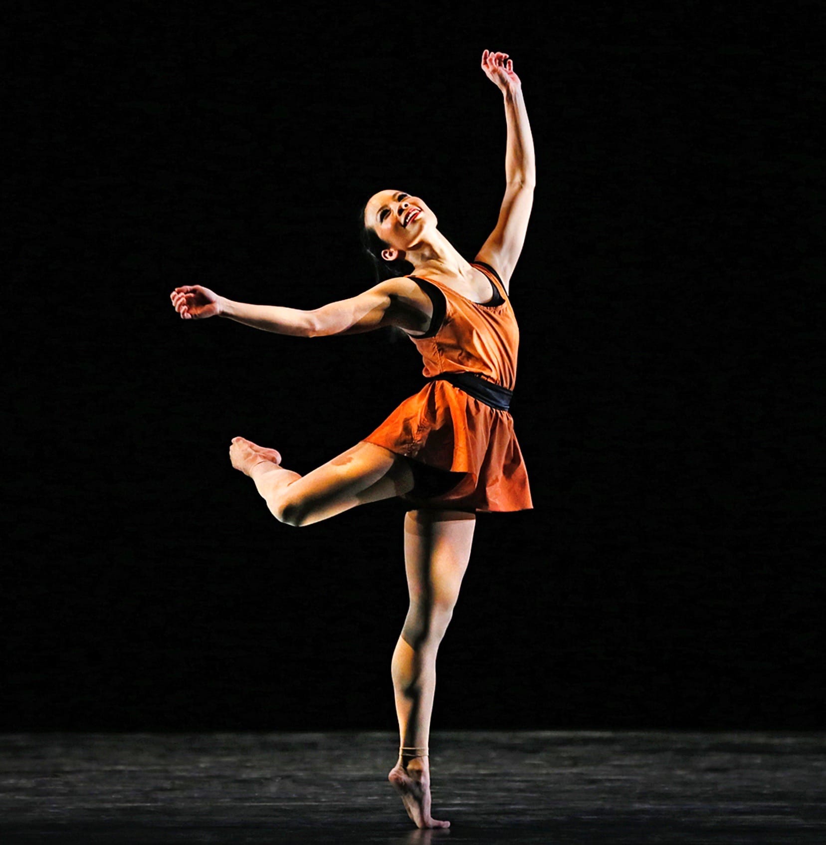 Madelyn Ho and John Harnage explored the brighter side of that paradise in their sprightly gavotte, full of unbelievably fast footwork. Their open-hearted joy seemed like an eternal spring, and there was a bucolic air to their dancing, the essence of a nymph and her faun. Sean Mahoney and Eran Bugge were a more mature but equally happy couple, confident and serene, as exemplified in the astounding lift in which Bugge balanced on Mahoney's thighs, leaning back with her arm outstretched, as if the air were her pillow.