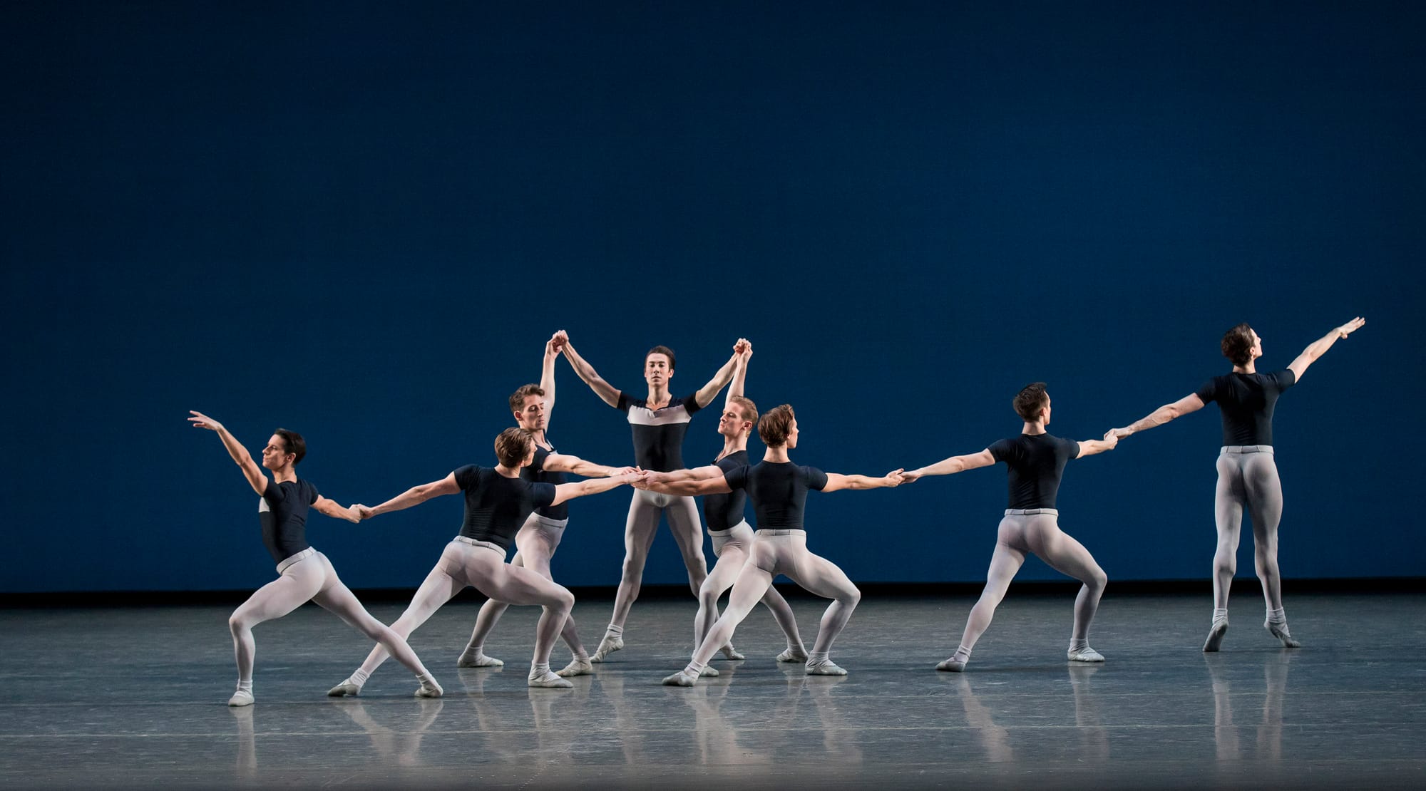 Just a brief pause separated the Reisen opus from the next ballet, “Chamber Music No. 2”, in which George Balanchine fractionated human anatomy cubistically to and against a Paul Hindemith composition. As in the Reisen, this 1978 ballet contrasted two couples (Abi Stafford and Joseph Gordon plus Teresa Reichlen and Russell Janzen) with a corps. Often the corps was used as a block, but Balanchine also broke it into four female-male pairs. The two leading couples were highly mobile and differed mainly in height – Stafford and Gordon being the shorter pair. The dancing and placement were clean cut throughout the piece, but missing was a hint of folkdance inflections that “Kammermusik” used to have when it was new.