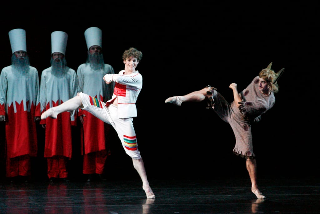 "The Little Humpbacked Horse", choreographed by Arthur Saint-Léon to a score by Cesare Pugni in 1864 for the Mariinsky, was the first ballet based on a Russian theme. Over the years, many hands have reworked it, and the current version has only the story to connect it with the original. Pugni, et al. were replaced in 1960 by a Rodion Shchedrin score (written originally for Maya Plisetskaya) and the current version was choreographed in 2009 by Alexei Ratmansky. The story, based on a fairy tale by Petr Yershov, is packed with incident, not all of it clear without studying the synopsis, but basically "once upon a time, there were three brothers, and the younger one was thought to be a fool...". Well, the fool ends up with the Princess and the kingdom, with the help of a feather from one of the firebirds and a little magical horse (prone to turns a la second).