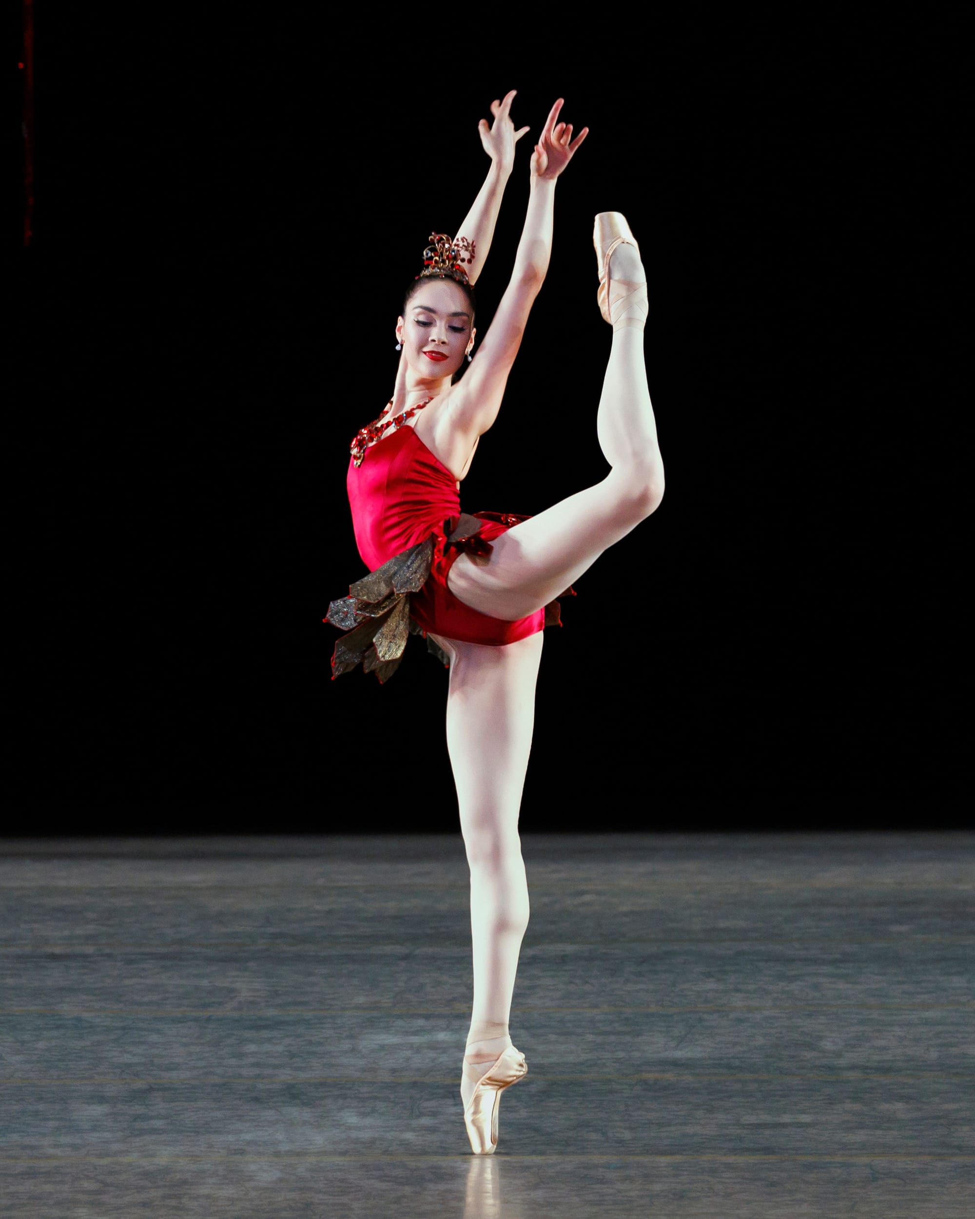 Nadon, too, gave the tall girl a playful air. She didn’t slam into her poses and her dancing had a nonchalant grace, almost teasing the four boys as they manipulated her. She held her arabesques penchée as if they were beautiful pauses during a stroll off stage, letting the audience luxuriate in her long legs and alabaster elegance.