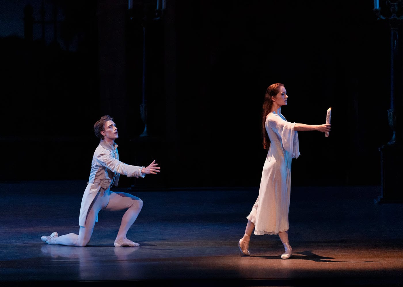 Phelan's Sleepwalker was more substantial than some, and she didn't have the mysterious phosphorescent glow that can make the Sleepwalker seem half-human, half-ghost; nevertheless, it was a very effective performance. Her bourrées flowed without any extra twinkling emphasis so the audience concentrated on her calm, yet oddly disturbing face. The startling moment when she discovered the Poet's body and, eyes still dead, gave a little shiver and bent back in mourning was electric, the first generous human emotion in the ballet.