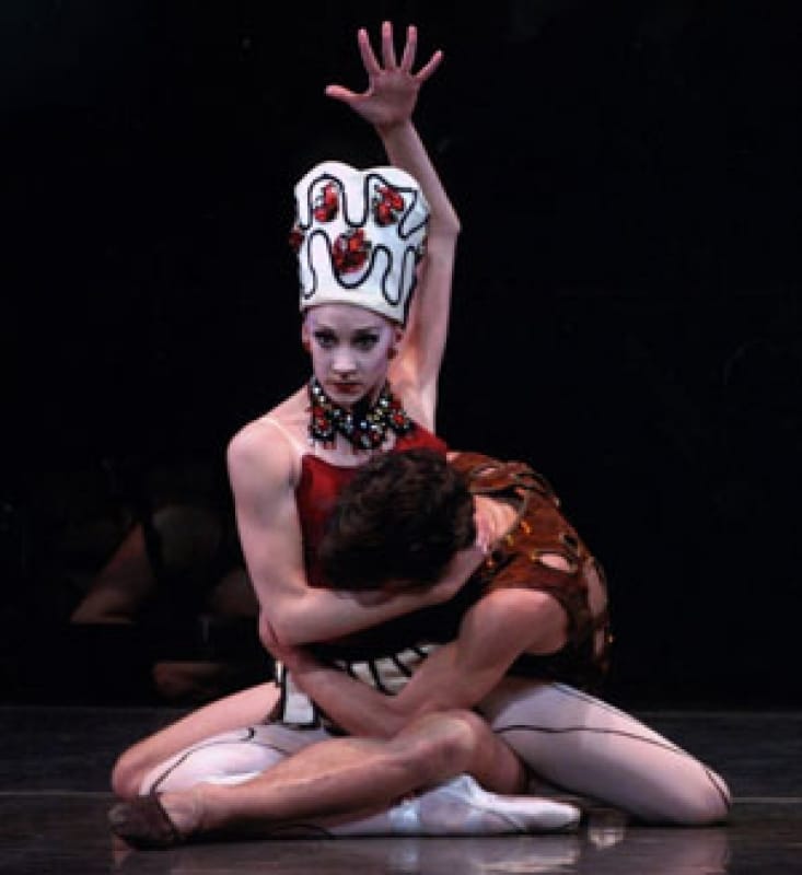 "La Sonnambula" is hampered by its somewhat prosaic set, which ignores the underlying unease and basic weirdness of the events. Of course the original surrealistic designs by Dorothea Tanning, for the original more evocatively entitled "Night Shadow" would probably look hopelessly dated now. Since the audience usually giggles during the haunting, mysterious moment when the Sleepwalker glides over the Poet's outstretched hand, they would probably guffaw at the sight of dancers wearing antlers or boats on their heads. But there is no reason for the Sleepwalker's light not to ascend to the sky during the powerfully simple ending.